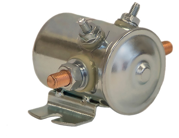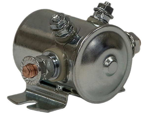 The continuous duty Insulated 12 Volt Steel Case Solenoid from Buyers Products features low-input, high-output operation that makes it ideal for 12V vehicle starters, snow plows, lift gates, spreaders, or cranes.