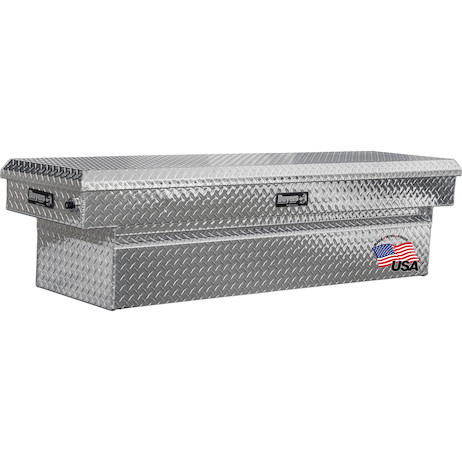 Constructed from durable, corrosion-resistant, and lightweight diamond tread aluminum, this truck tool box is built to last. Push-button locks on either side ensure that your tools remain secure and readily accessible, while a weather-resistant seal protects your equipment from moisture and dirt. Installation is hassle-free, thanks to pre-drilled mounting holes and included mounting hardware.