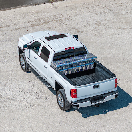Protect and secure your equipment for the long haul with Buyers Products Diamond Tread Aluminum Crossover Truck Box. This truck box is designed to fit full-size pickups with 6.5-foot and 8-foot beds, suspending securely from your truck's bed side rails.