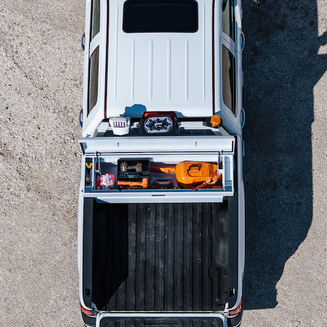 Lockable tray and integrated tool holders make it easy to stay organized.
