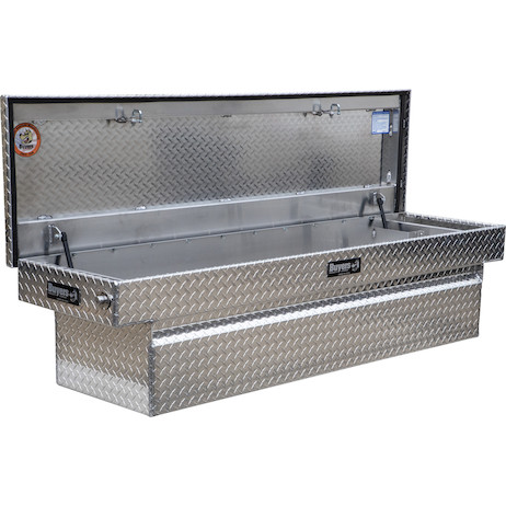 Protect and secure your equipment for the long haul with Buyers Products' easy-to-access Diamond Tread Aluminum Crossover Truck Box. The truck box suspends from your truck's bed side rails and is designed to fit full-size pickups with 6.5 ft and 8 ft beds.