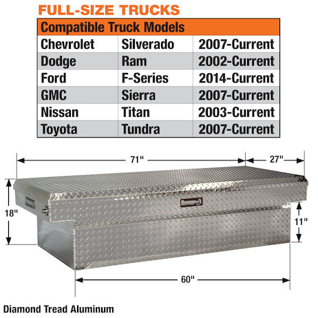 Diamond Tread Aluminum Crossover Truck Tool Box - 71" W x 18" H x 27" D (Part #1709420)