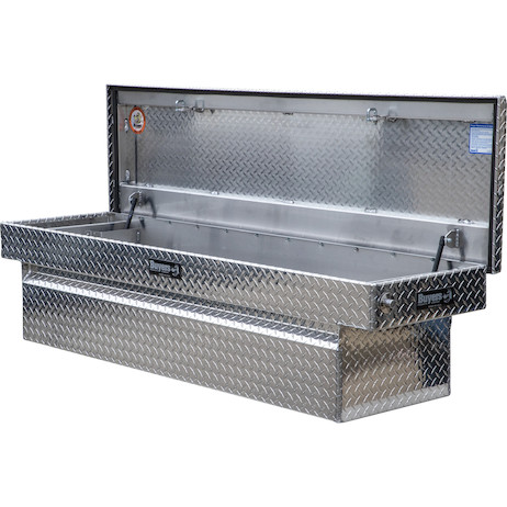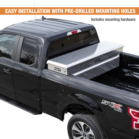 The durable truck tool box is crafted with corrosion resistant and lightweight diamond tread aluminum. Stainless steel push-button locks on either side of the box help your tools stay secure and accessible, and a weather resistant seal keeps moisture and dirt away from your equipment . Pre-drilled mounting holes and included mounting hardware make installation easy.