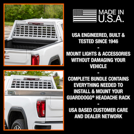 GuardDogg® Headache Rack allows you to mount lights, secure cargo, and more without drilling holes in your truck.