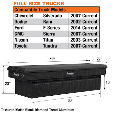 23x27x71 Inch Textured Matte Black Diamond Tread Aluminum Crossover Truck Box