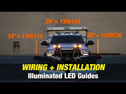 The fluorescent orange nylon markers come pre-wired and include a stainless steel stud mount. The wire harness is 12 ft per side with a pre-terminated male bullet connector and ring terminal to connect to the guides. Installation is easy and only requires a few basic tools for wiring and routing the cables. The LED guides are compatible with most snow plows and bumpers.