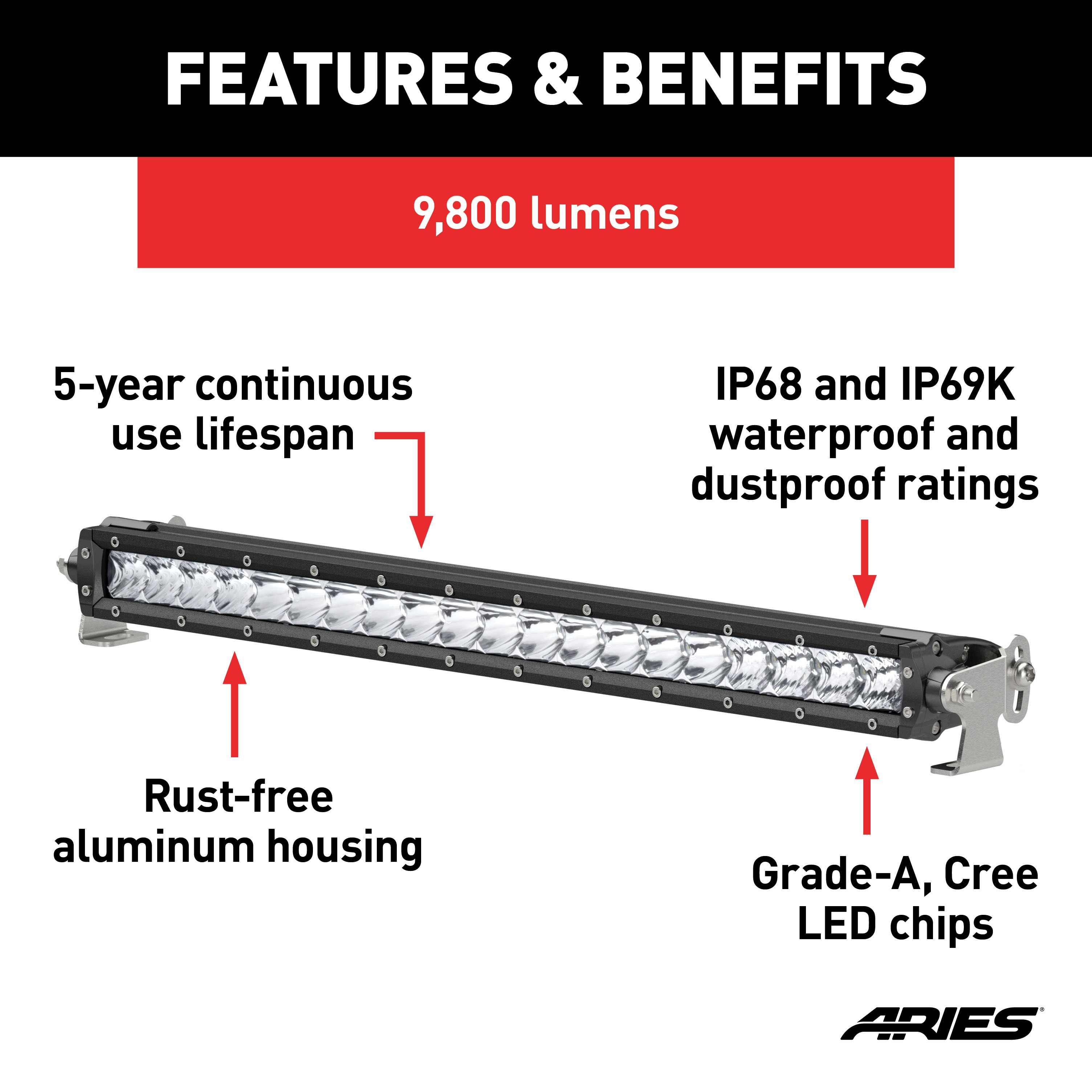 ARIES 1501262 20-Inch Single-Row LED Light Bar, 9,800 Lumens Combo Beam, Waterproof and Dustproof