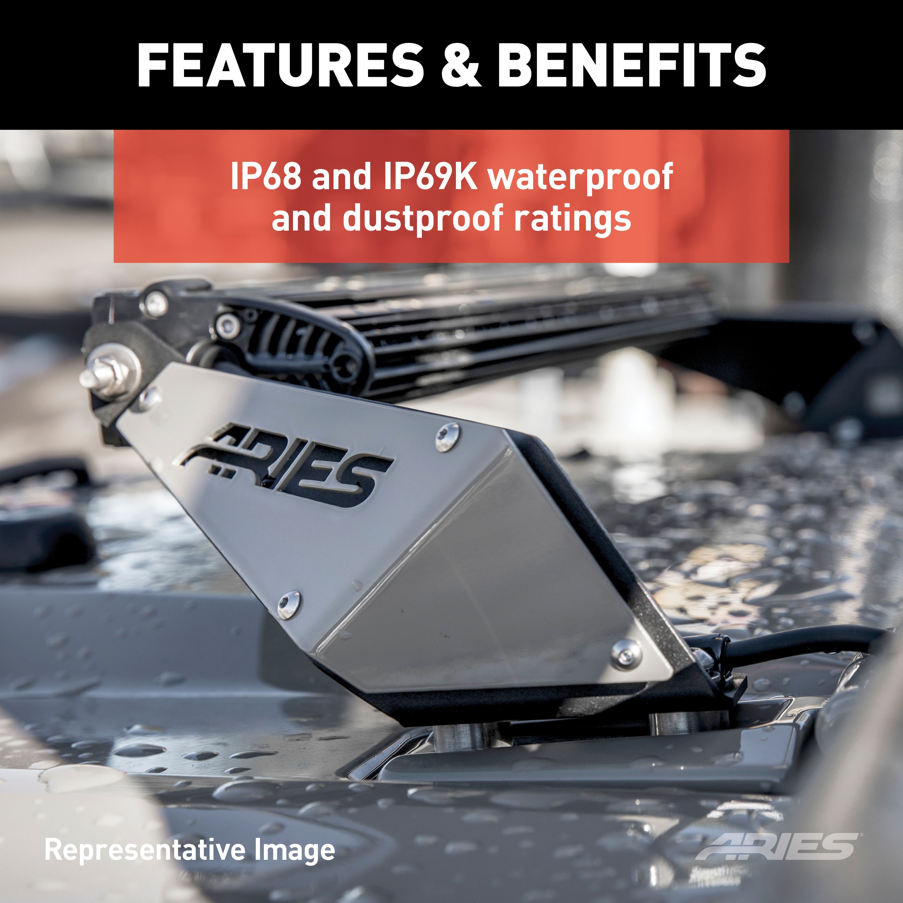ARIES 1501300 20-Inch LED Light Bar for Jeep Wrangler JK, Hood Mount Brackets, 9,800-Lumen Combo Beam