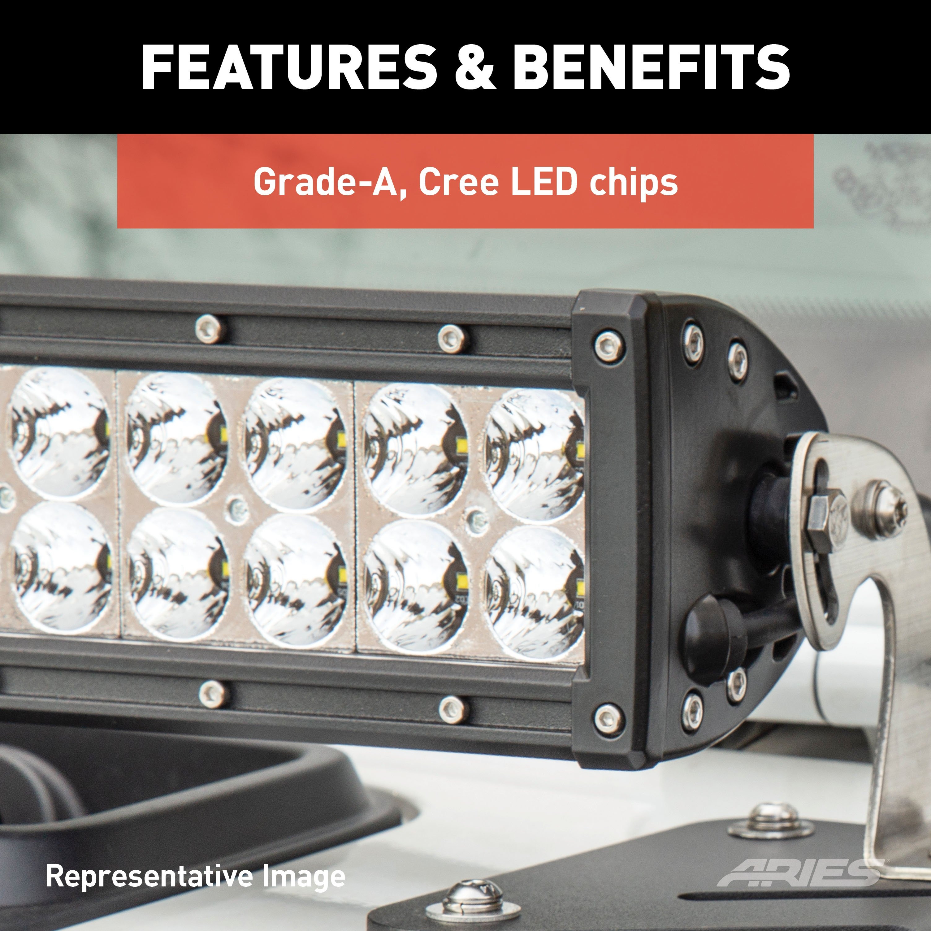 - Grade-A LED chips offer 24,000-lumen, combo beam pattern
