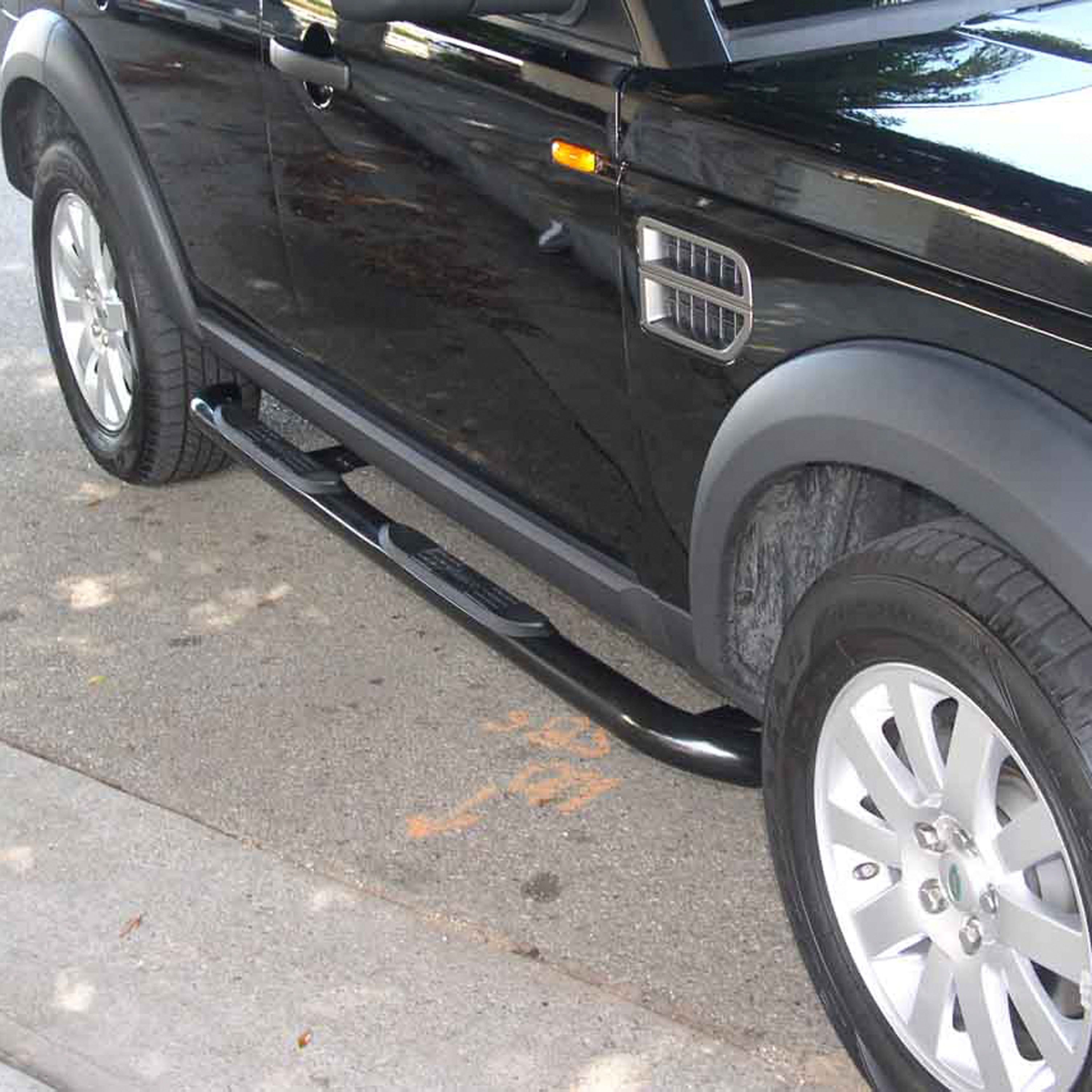 ARIES 3" side bars are more than a fancy decal for your truck, Jeep or SUV. They are a confident first step on each new adventure. These 3" nerf bars are constructed from strong carbon steel for superior rigidity, and they feature a sleek semi-gloss black powder coat finish. For an added edge, each nerf bar also goes through an E-coat process, before receiving its black powder coat, to strengthen and protect the final finish against peeling, chipping and scratching. ARIES 3" round side bars are also available in polished stainless steel or semi-gloss black powder-coated steel. All ARIES 3" nerf bars come with heavy-duty steel brackets and non-skid step pads. The mounting brackets are strong and custom-designed for specific makes and models to allow the side bars to contour to the lines of your vehicle. They offer easy installation and the strength necessary to provide sound footing. These particular custom nerf bars fit specific years of the Land Rover LR3 (see application info to verify fitment). ARIES 3" round side bars also come with non-skid step pads made of tough polypropylene. These step pads feature a textured pattern for enhanced safety, and they cover a wide portion of the tubes for a more comfortable step.
