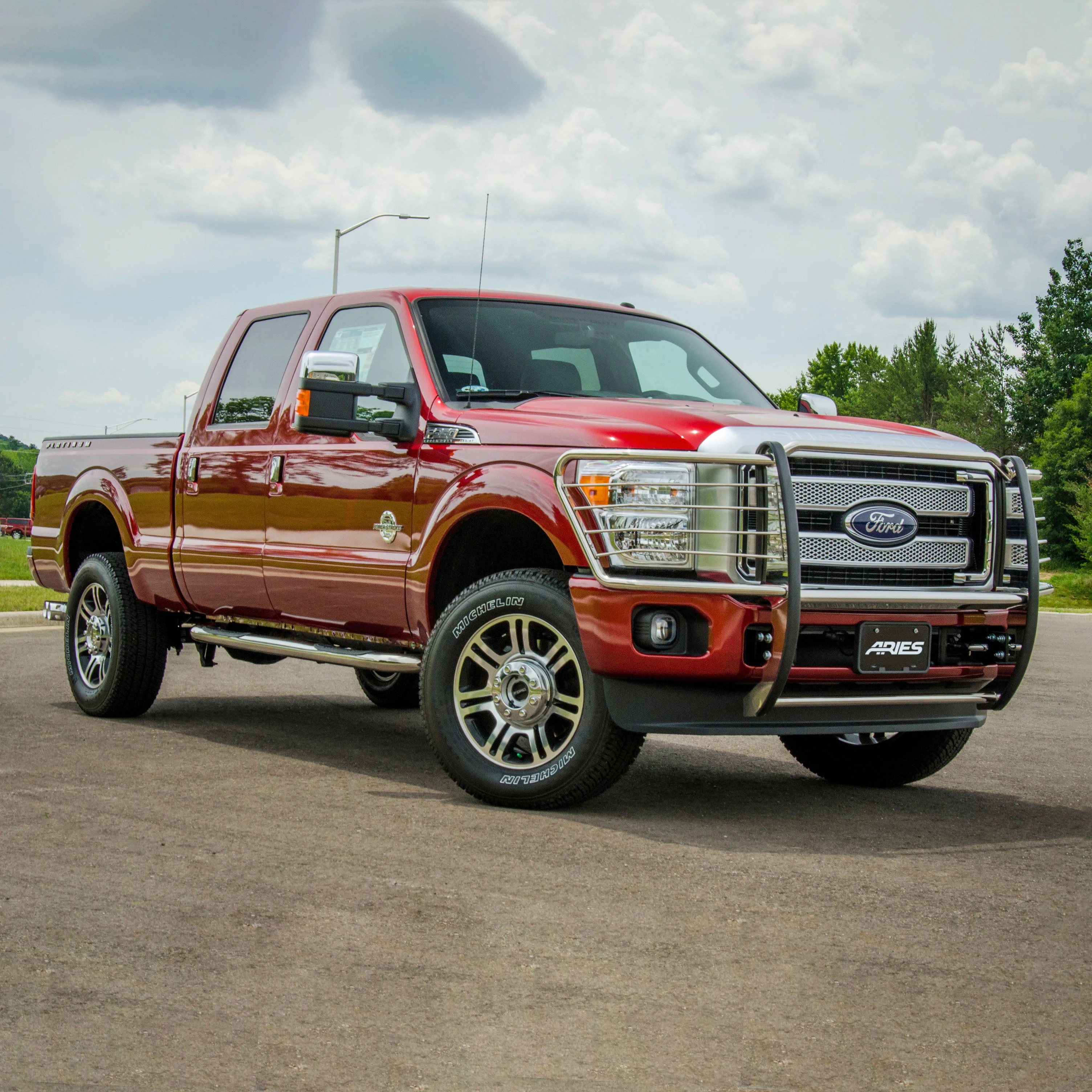 ARIES 3" side bars add a custom look and dependable footing to your truck, Jeep or SUV. They feature a classic style, a strong design and non-skid step pads. ARIES nerf bars are all made vehicle-specific for a custom, no-drill fit, and they are available in multiple finish options. This set of nerf bars is constructed from 304 stainless steel with a polished finish. Our 304 stainless steel is a true stainless with high nickel content, offering better corrosion resistance and a long-lasting finish. The polish is a triple application, resulting in a mirror-like shine to complement your vehicle. ARIES 3" round side bars also come with high-strength steel brackets and non-skid step pads. The mounting brackets -- as well as the side bars and step pads -- are custom-designed for specific makes and models to allow the nerf bars to contour to the lines of your vehicle. This ensures easy, no-drill installation and the strength necessary to provide solid footing. This particular set of custom nerf bars fits specific years of the Ford Excursion, F250 Super Duty and F350 Super Duty (see application info to verify fitment). ARIES 3" round side bars also come with non-skid step pads made of polypropylene. These wide, custom-positioned step pads feature a textured pattern and cover a wide portion of the tubes to be more comfortable and high-traction, even in wet conditions.