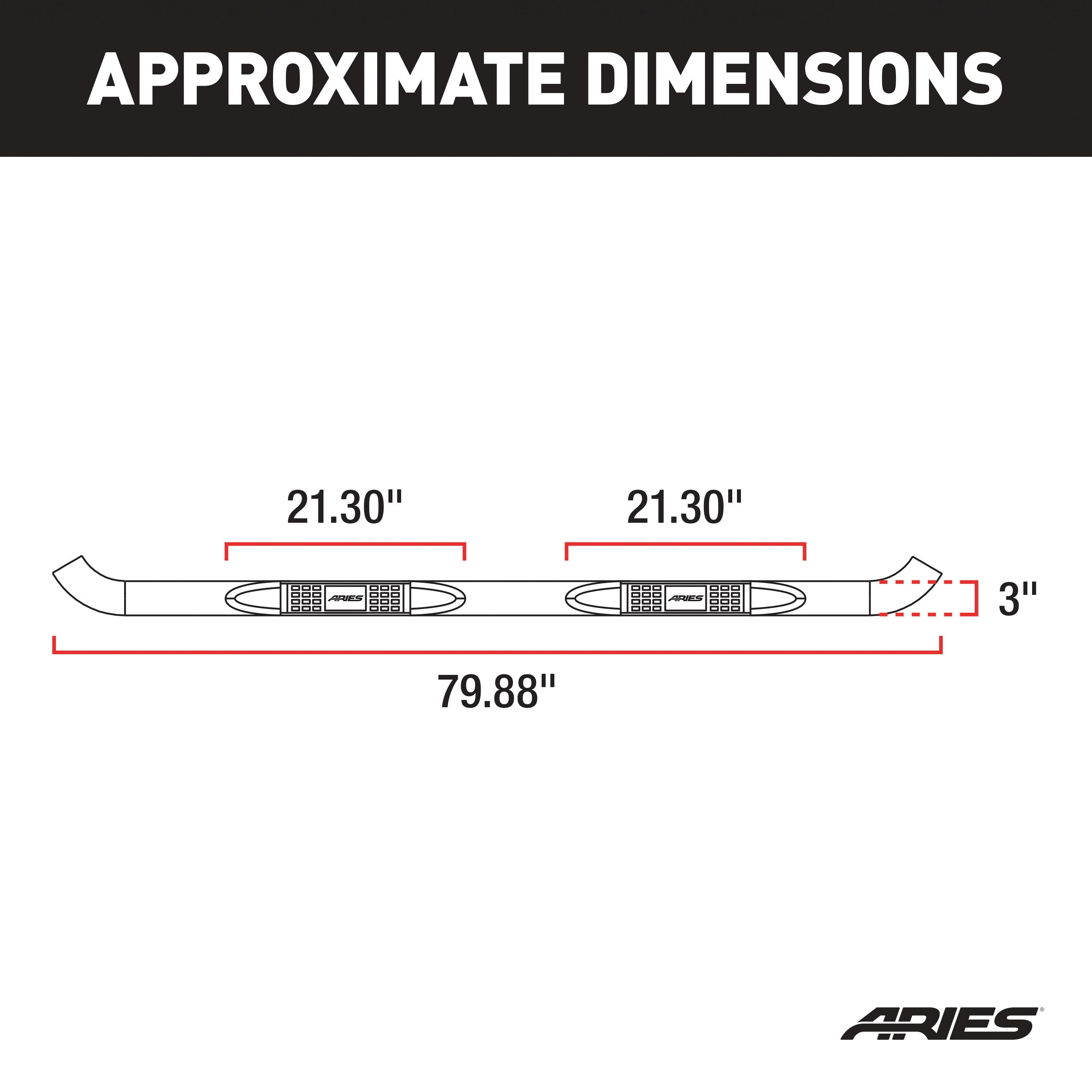 ARIES 3" side bars are more than a fancy decal for your truck, Jeep or SUV. They are a confident first step on each new adventure. These 3" nerf bars are constructed from strong carbon steel for superior rigidity, and they feature a sleek semi-gloss black powder coat finish. For an added edge, each nerf bar also goes through an E-coat process, before receiving its black powder coat, to strengthen and protect the final finish against peeling, chipping and scratching. ARIES 3" round side bars are also available in polished stainless steel or semi-gloss black powder-coated steel. All ARIES 3" nerf bars come with heavy-duty steel brackets and non-skid step pads. The mounting brackets are strong and custom-designed for specific makes and models to allow the side bars to contour to the lines of your vehicle. They offer easy installation and the strength necessary to provide sound footing. These particular custom nerf bars fit specific years of the Ford F150 (see application info to verify fitment). ARIES 3" round side bars also come with non-skid step pads made of tough polypropylene. These step pads feature a textured pattern for enhanced safety, and they cover a wide portion of the tubes for a more comfortable step.