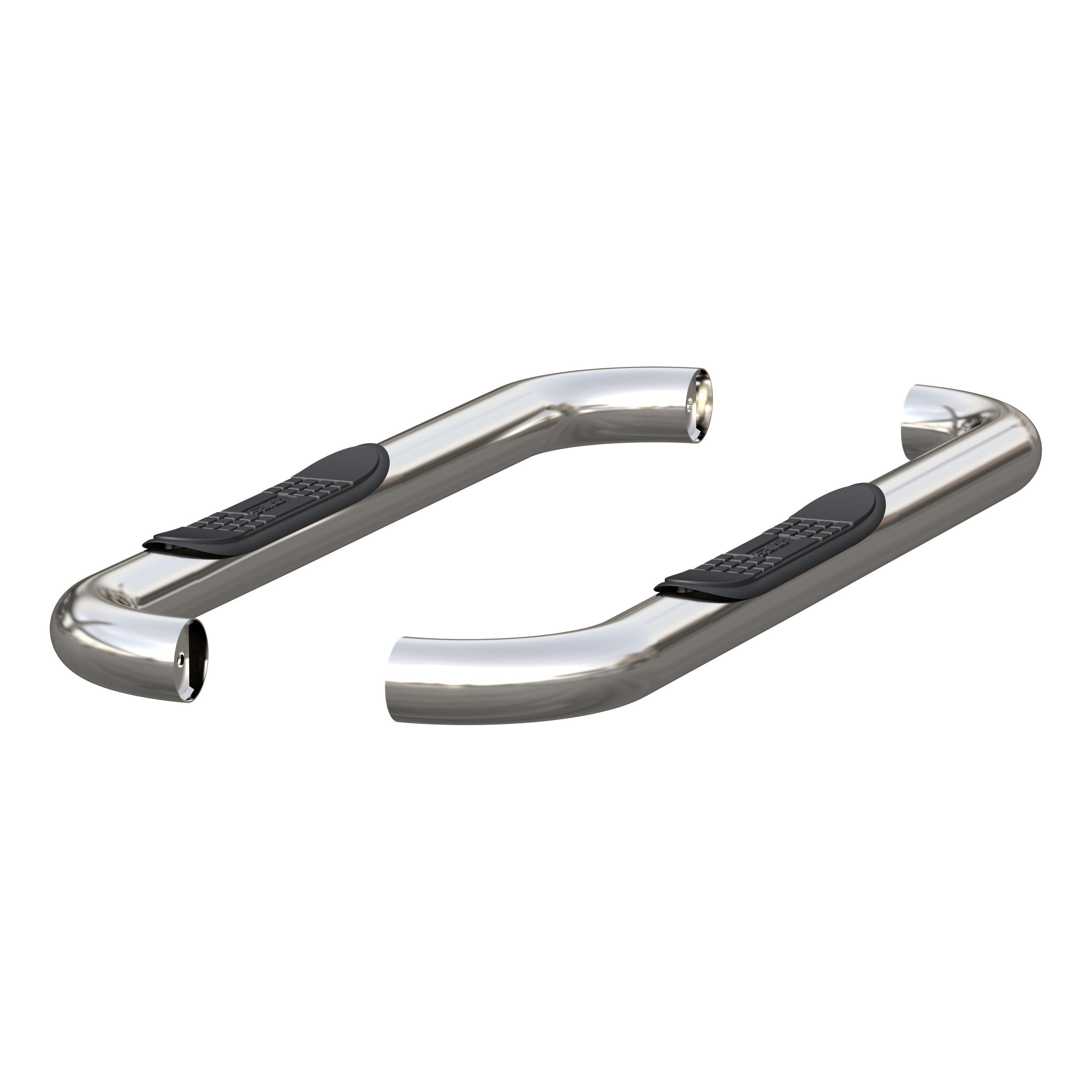 ARIES 3" side bars add a custom look and dependable footing to your truck, Jeep or SUV. They feature a classic style, a strong design and non-skid step pads. ARIES nerf bars are all made vehicle-specific for a custom, no-drill fit, and they are available in multiple finish options. This set of nerf bars is constructed from 304 stainless steel with a polished finish. Our 304 stainless steel is a true stainless with high nickel content, offering better corrosion resistance and a long-lasting finish. The polish is a triple application, resulting in a mirror-like shine to complement your vehicle. ARIES 3" round side bars also come with high-strength steel brackets and non-skid step pads. The mounting brackets -- as well as the side bars and step pads -- are custom-designed for specific makes and models to allow the nerf bars to contour to the lines of your vehicle. This ensures easy, no-drill installation and the strength necessary to provide solid footing. This particular set of custom nerf bars fits specific years of the Ram 1500, 2500 or 3500 and Dodge Ram 1500, 2500 or 3500 (see application info to verify fitment). ARIES 3" round side bars also come with non-skid step pads made of polypropylene. These wide, custom-positioned step pads feature a textured pattern and cover a wide portion of the tubes to be more comfortable and high-traction, even in wet conditions.
