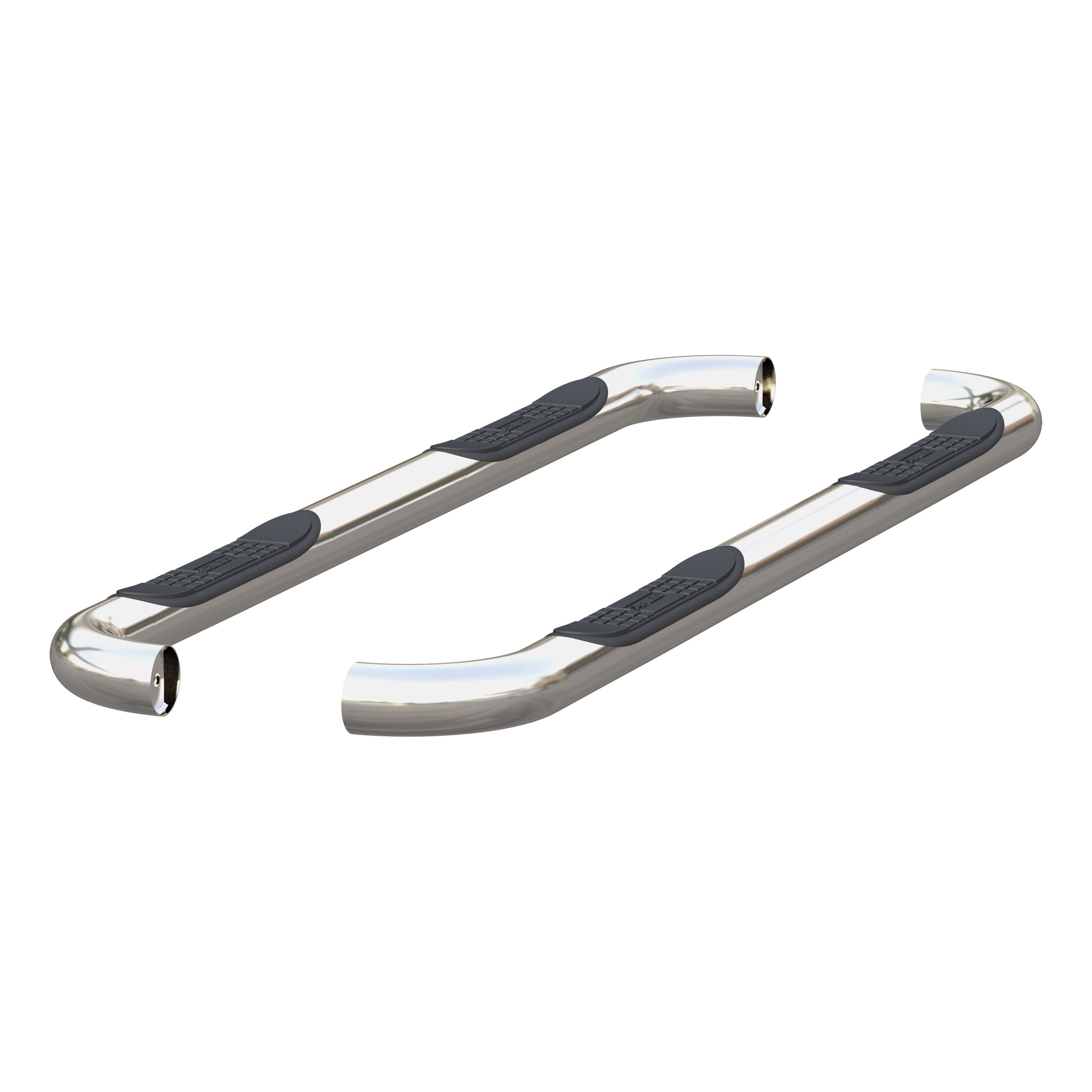ARIES 3" side bars add a custom look and dependable footing to your truck, Jeep or SUV. They feature a classic style, a strong design and non-skid step pads. ARIES nerf bars are all made vehicle-specific for a custom, no-drill fit, and they are available in multiple finish options. This set of nerf bars is constructed from 304 stainless steel with a polished finish. Our 304 stainless steel is a true stainless with high nickel content, offering better corrosion resistance and a long-lasting finish. The polish is a triple application, resulting in a mirror-like shine to complement your vehicle. ARIES 3" round side bars also come with high-strength steel brackets and non-skid step pads. The mounting brackets -- as well as the side bars and step pads -- are custom-designed for specific makes and models to allow the nerf bars to contour to the lines of your vehicle. This ensures easy, no-drill installation and the strength necessary to provide solid footing. This particular set of custom nerf bars fits specific years of the Ram 1500, 2500 or 3500 and Dodge Ram 1500, 2500 or 3500 (see application info to verify fitment). ARIES 3" round si de bars also come with non-skid step pads made of polypropylene. These wide, custom-positioned step pads feature a textured pattern and cover a wide portion of the tubes to be more comfortable and high-traction, even in wet conditions.