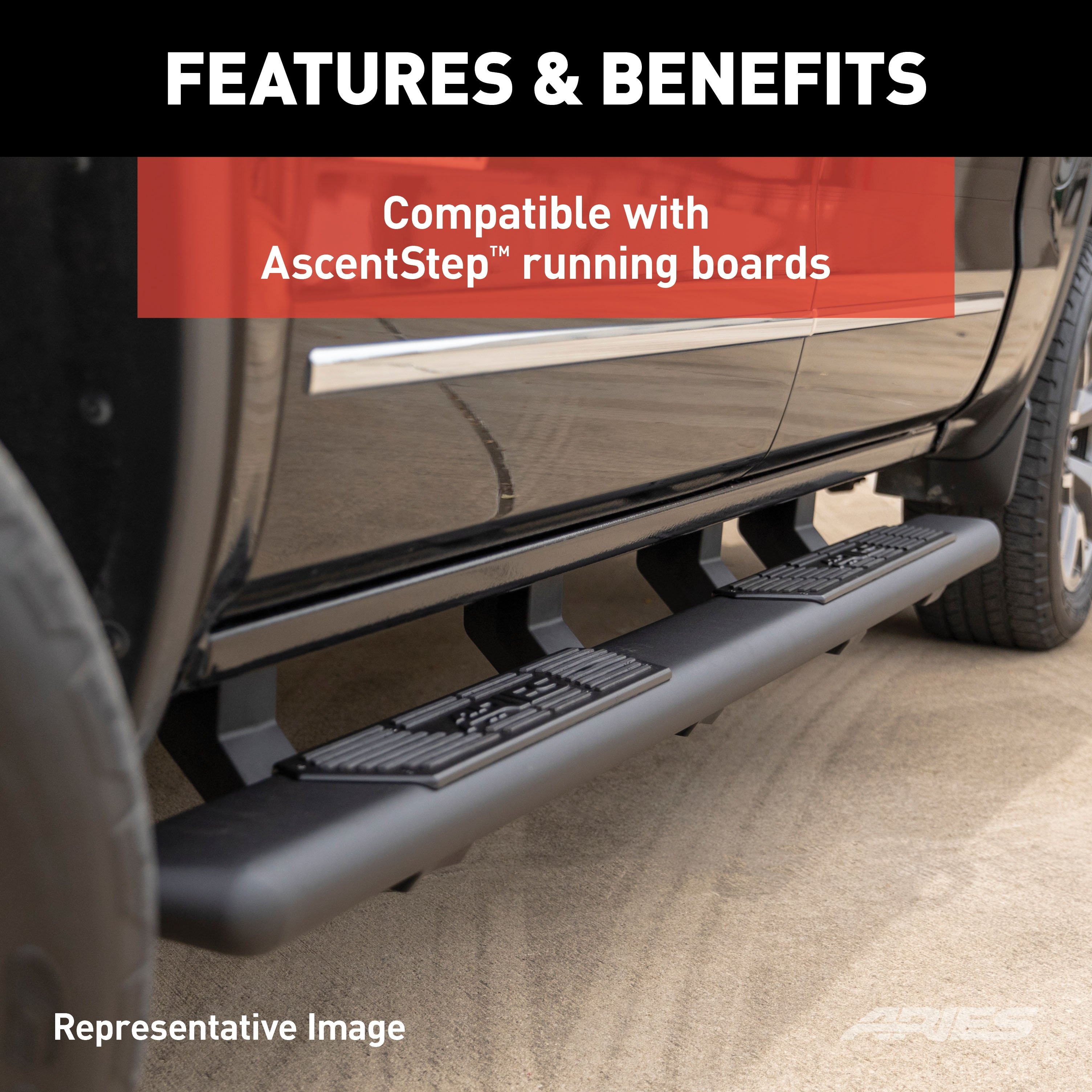 While many side accessories feature a universal track mounting system for easier installation and inventory requirements, the ARIES VersaTrac mounting system takes things a step further. VersaTrac uses a single set of vehicle-specific brackets to accommodate different side accessory options. This not only means different finish options but also different products entirely. With the brackets installed, any side bar or running board equipped with the VersaTrac mounting system can be attached or swapped out whenever desired. The VersaTrac mounting system saves you time and money. It eliminates the need to purchase and install an entirely new set of mounting brackets with each new side accessory. The mounting brackets are available for purchase as a stand-alone item or as part of a complete kit with compatible side bars and running boards. Use the application information to determine which part numbers will fit your vehicle.