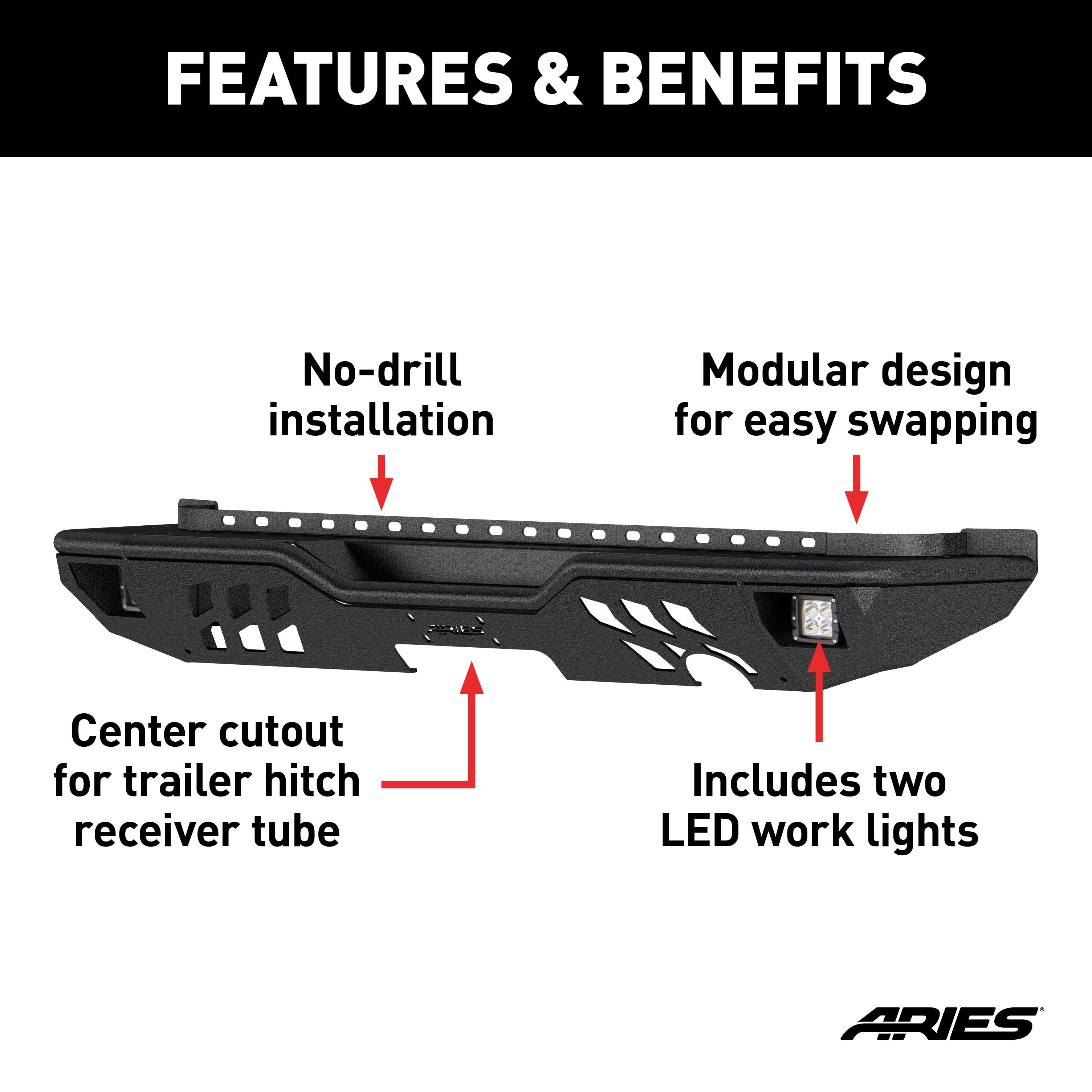 ARIES 2082061 TrailChaser Black Aluminum Rear Bumper with LED Lights, Select Jeep Wrangler JK