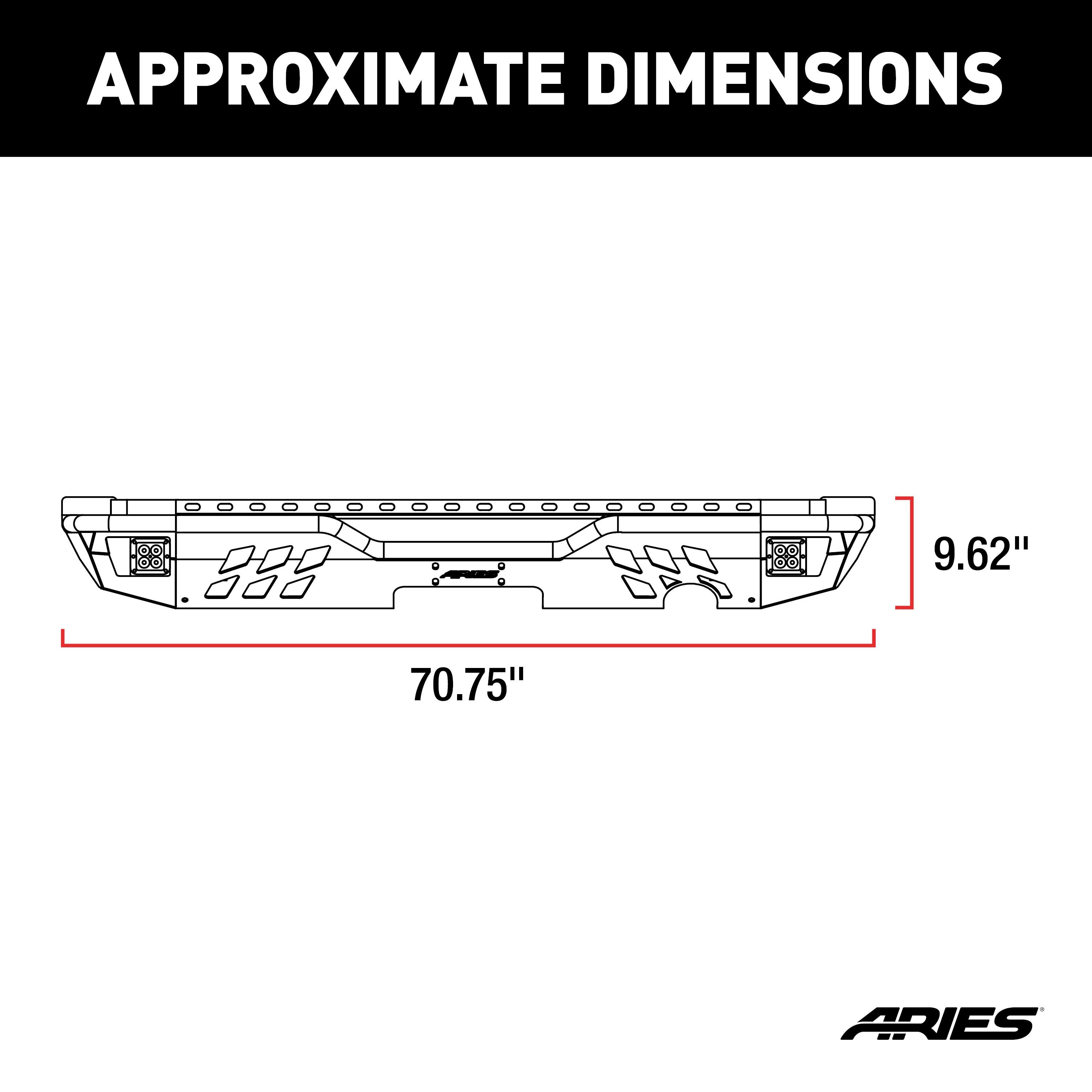 The ARIES TrailChaser Jeep bumper is unlike any other bumper for the Jeep Wrangler JK because it features a modular design. This particular bumper for the rear of the Jeep includes the center section and side extensions with integrated LED lights. It is constructed from T6 aluminum alloy to be strong, lightweight and rust-free, and has a unique, textured black powder coat finish for maximum corrosion resistance. It is also available in high-strength, powder-coated steel. The bumper corners offer a professional finishing touch with their integrated LED lights. The 2" square work lights put out 2,200 lumens each and feature a flood beam pattern. They are made with grade-A LED chips, rust-free aluminum construction, an IP68-standard breather and dual heat sinks. They are also thoroughly tested and come with a waterproof wiring harness for easy installation. All ARIES TrailChaser bumpers install using pre-existing factory mounting points for fast, easy installation with no drilling required.
