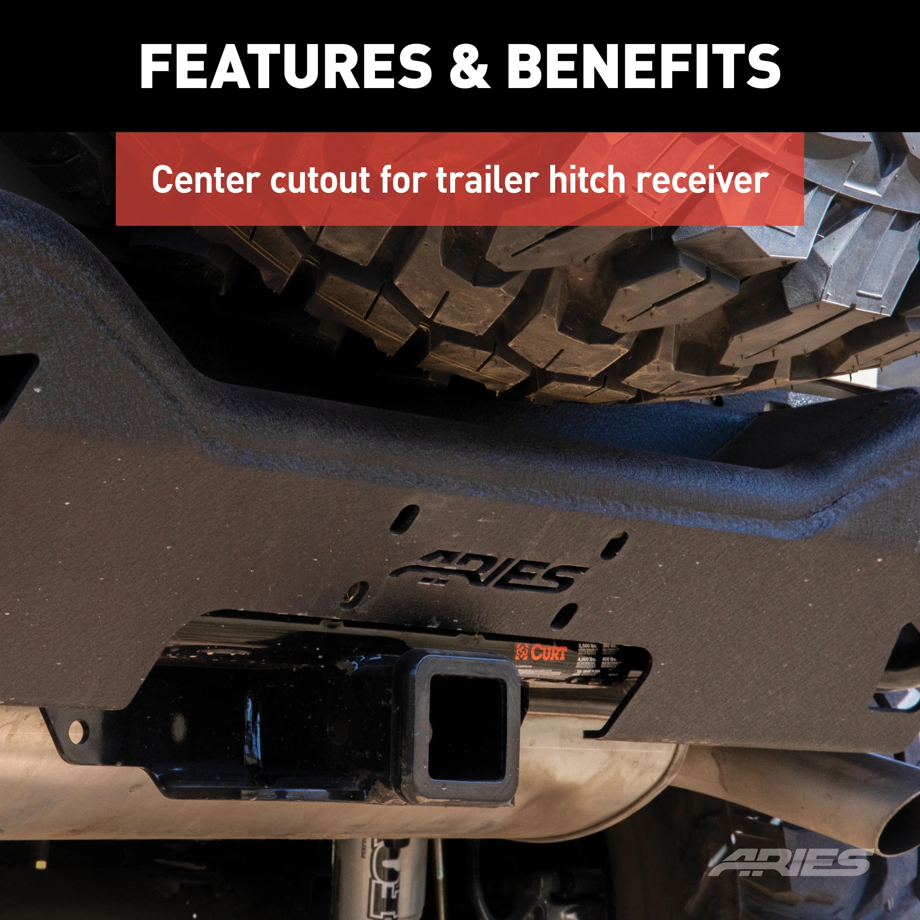 - Center cutout for trailer hitch receiver tube