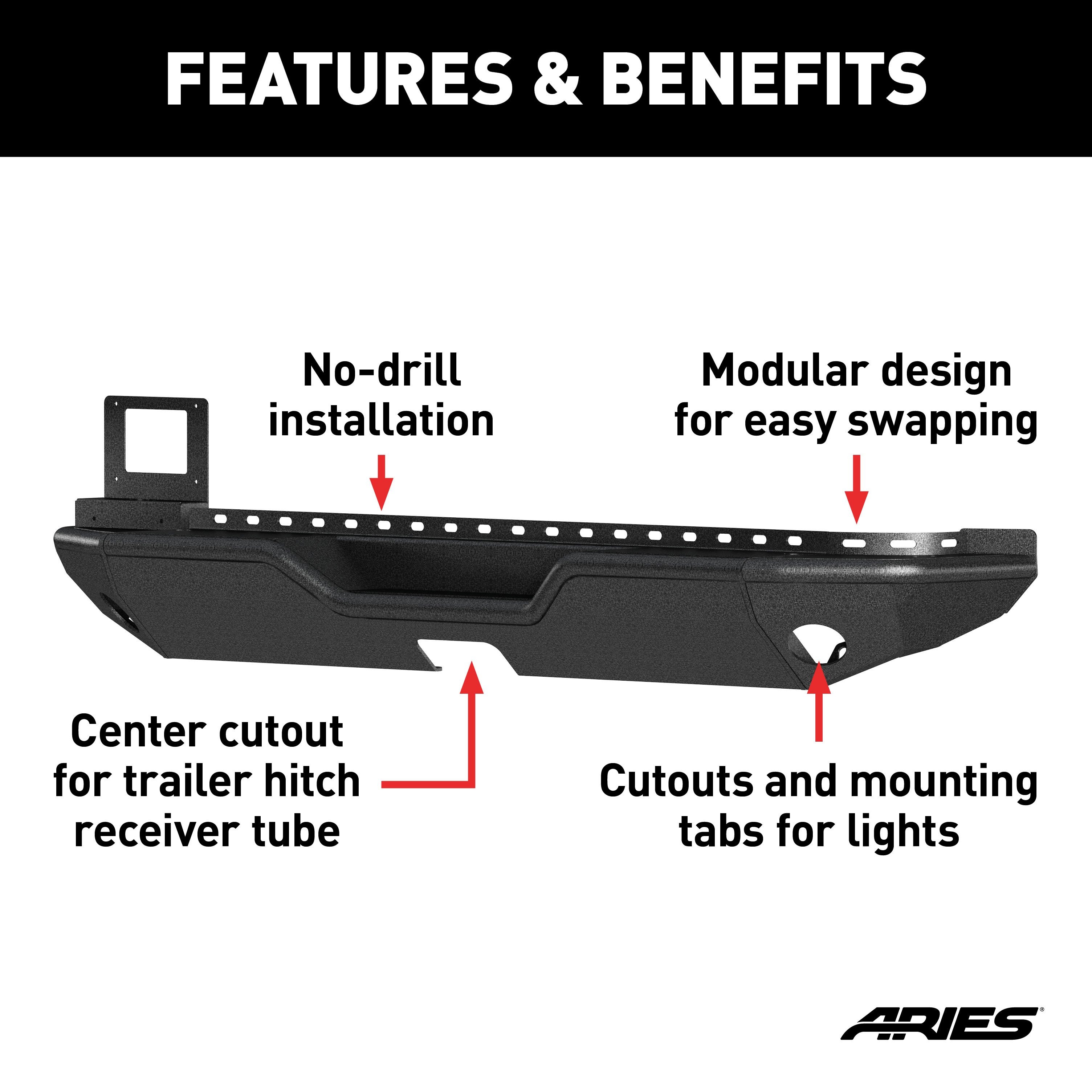 ARIES 2082082 TrailChaser Black Aluminum Rear Bumper, Select Jeep Wrangler JL