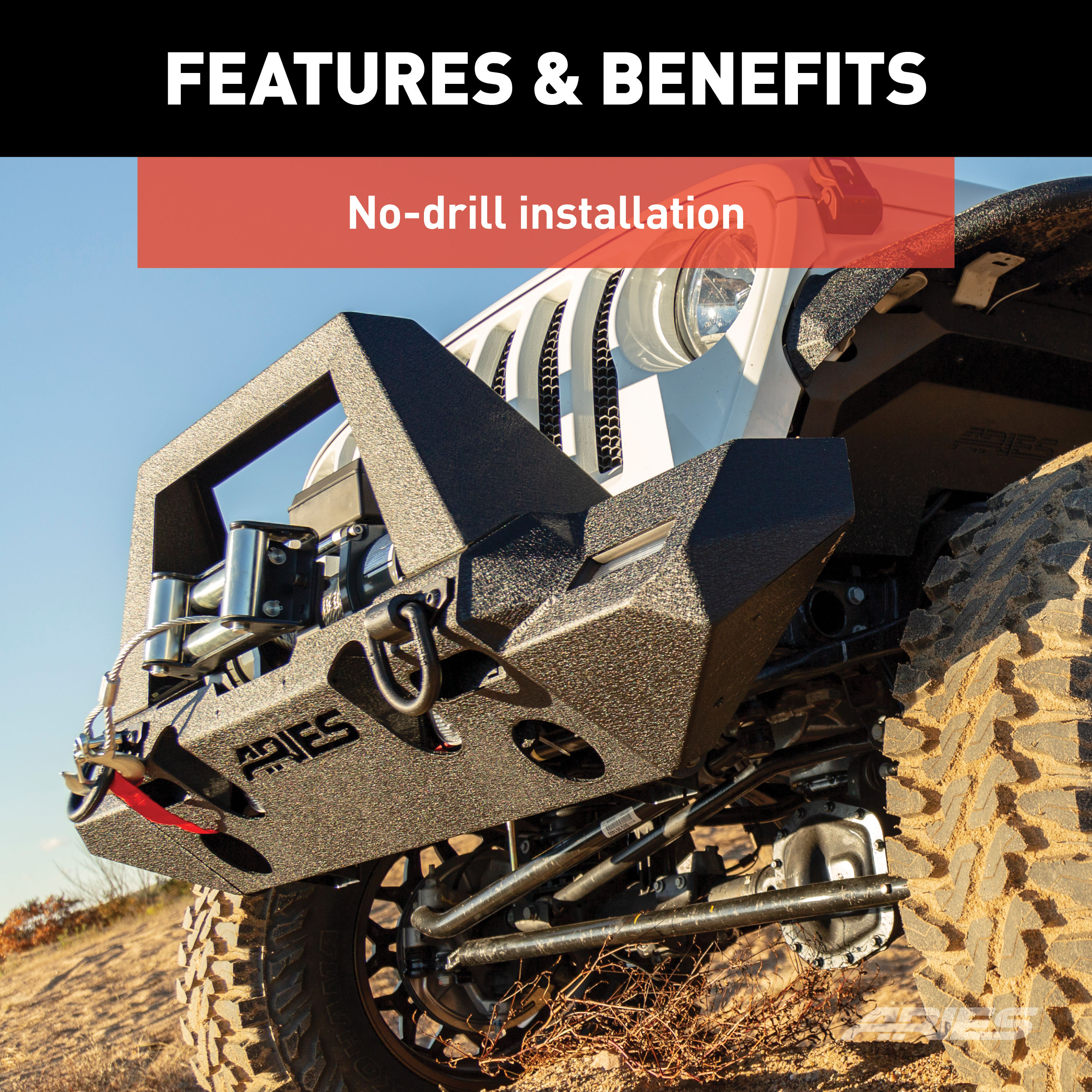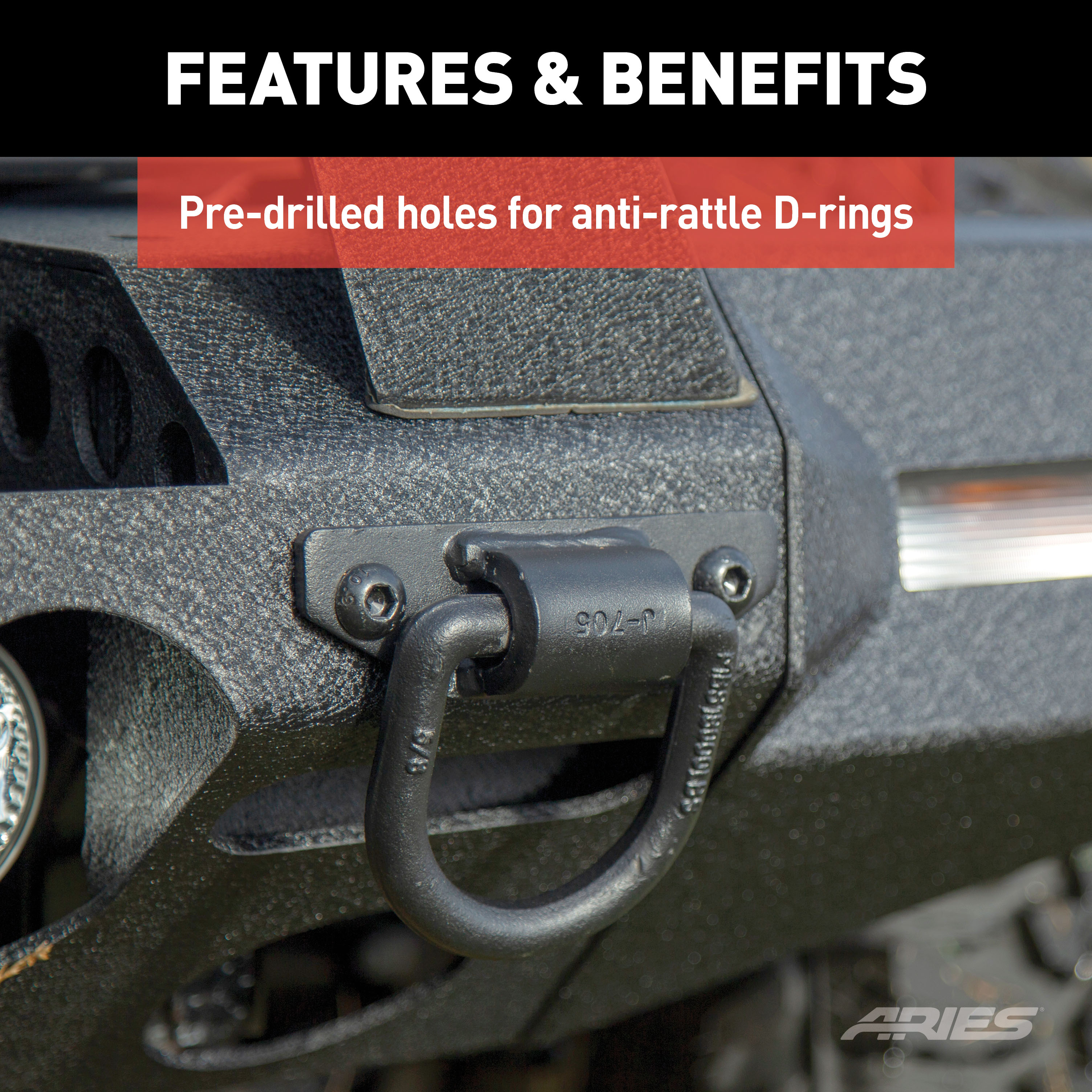 - Pre-drilled holes for anti-rattle D-rings #2081300 and tow hooks #15600TW