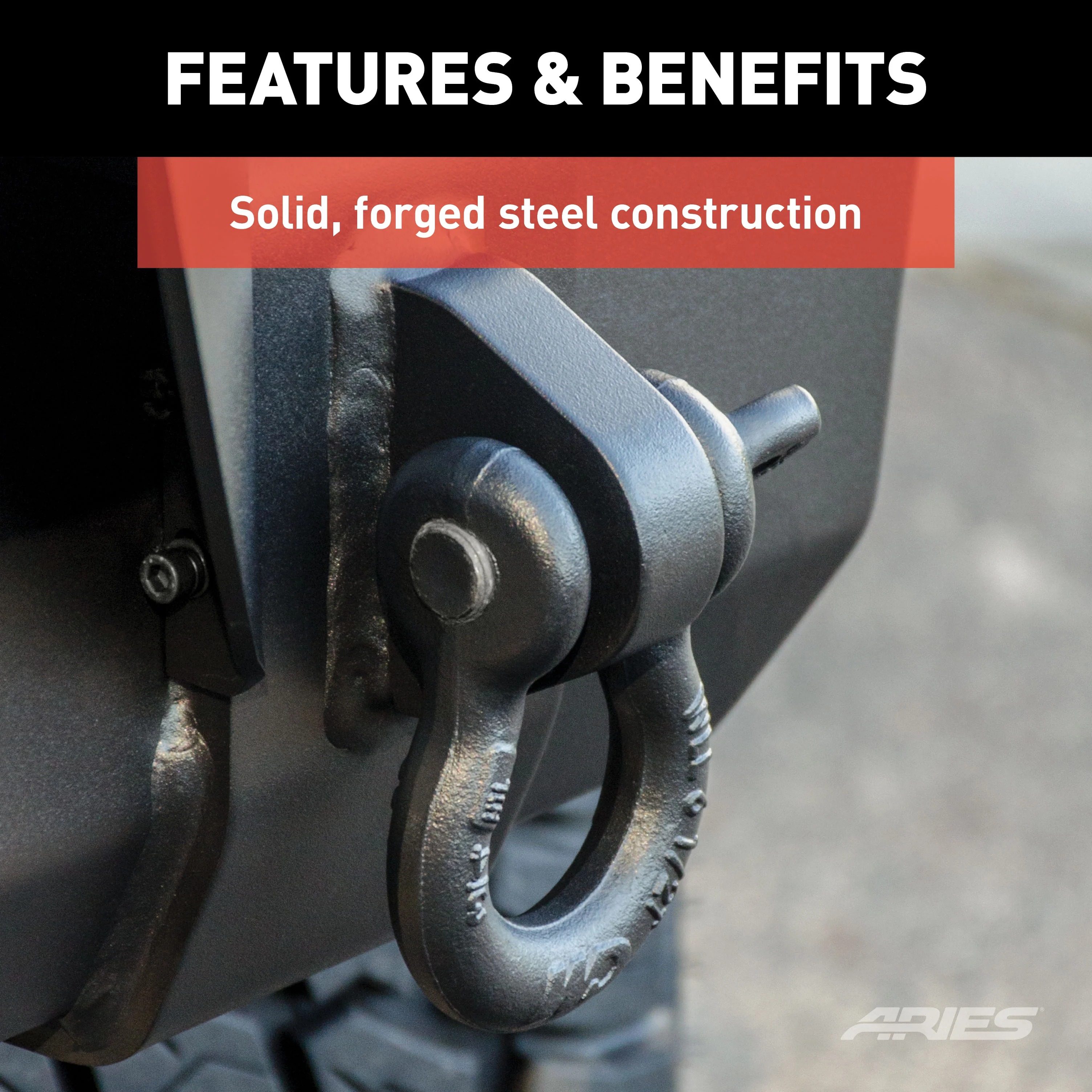 ARIES 2166071 Heavy-Duty Bolt-On Tow Hooks D-Ring Shackles, 12,500 lbs Capacity