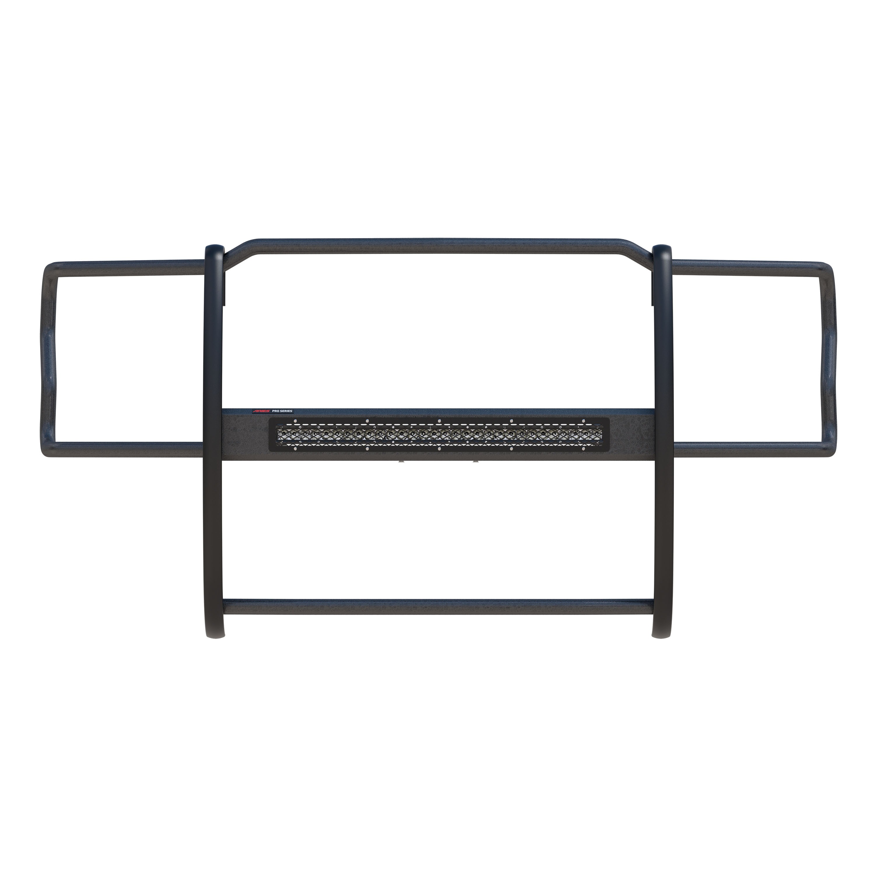 The ARIES Pro Series grille guard is unlike any other grille guard or brush guard on the road today because of its patented center crossbar. The ARIES Pro Series grille guard has a unique center crossbar that houses an LED light bar, allowing you to truly set your truck apart from all others. Rather than using a set of light clips or forcing you to drill holes into the frame, the aerodynamic crossbar of the Pro Series grille guard is the light bar housing itself. It uses a 30" slotted channel bracket to mount the included 30" LED light bar #1501264. The bracket can also accept other single-row light bars (some 30" light bars may not fit). The crossbar mount can also articulate, allowing you to position the light beam at any angle you prefer. Integrating the channel mount into the crossbar housing also keeps the light bar protected from the elements. To further stylize your truck, the Pro Series grille guard also comes with an interchangeable grille guard cover plate. Included with each grille guard is a black mesh cover plate that easily bolts on and provides added security for your aftermarket lights. The mesh cover plate can be swapped out with other cover plate options, including five different styles and two finishes. Solid construction should be an essential feature of any grille guard, and the Pro Series grille guard is more than qualified. It has a one-piece design of 1/4" thick welded plates and 1-1/2" mandrel-bent carbon steel tubing. We also finish each Pro Series grille guard in a highly durable, dual-layer E-coat and textured black powder coat, giving it resilience to rust and scratches. This unique finish also helps hide minor scratches and grime to maintain a clean look. ARIES Pro Series grille guards are made vehicle-specific for seamless integration with the factory bumper and an easy, no-drill installation. This grille guard fits select model years of the Ford F-250, F-350, F-450 and F-550 Super Duty (see application info to verify fitment).