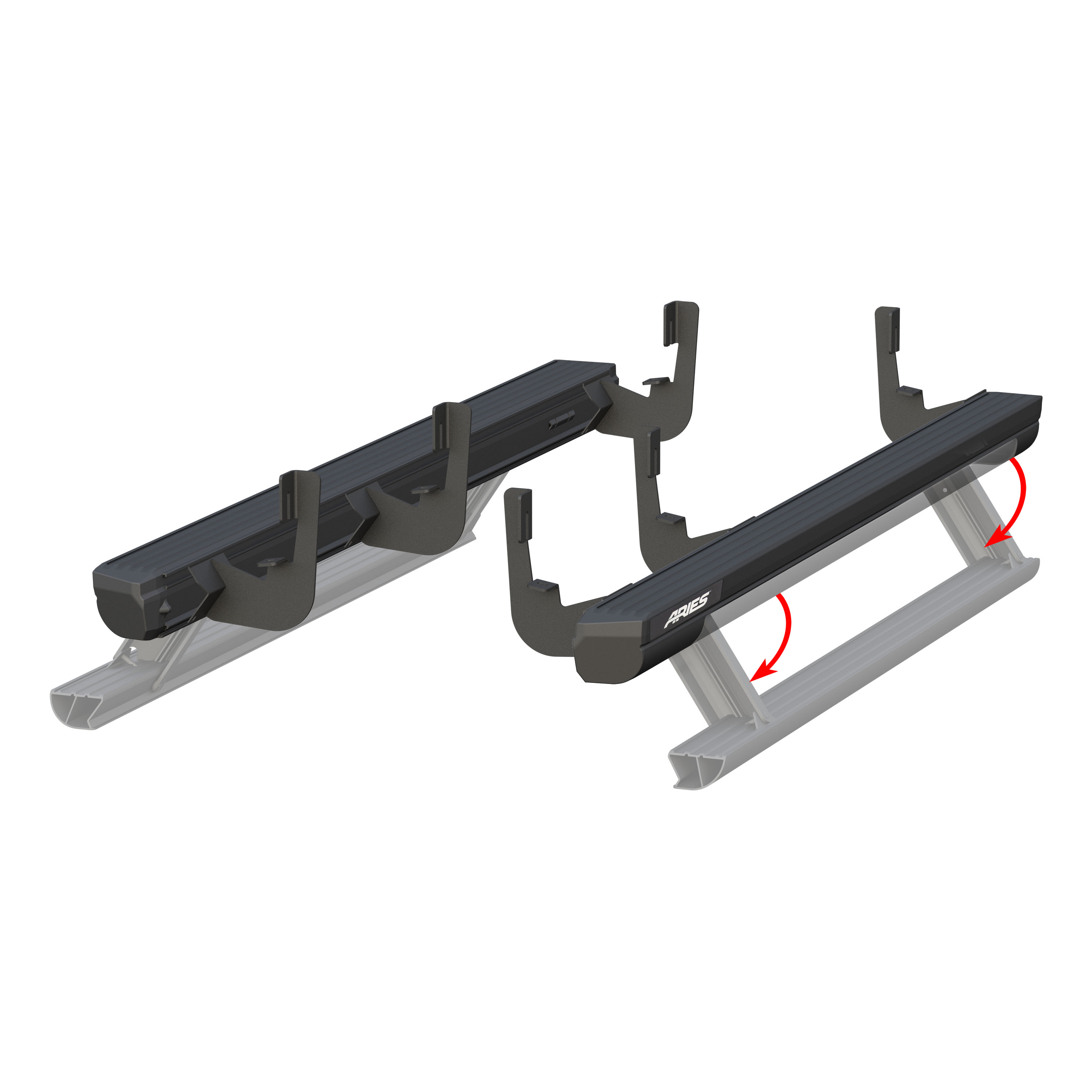 ARIES ActionTrac powered running boards are unique from other power side steps because they are actually two steps in one. This patented step-within-a-step design -- combined with a no-drill bracket installation, control module operation and powder-coated aluminum c onstruction -- truly makes these retractable running boards an asset for the offroad truck or Jeep, particularly as lifted truck steps. ActionTrac powered running boards have one 4" wide step on top of the main housing and one 3" wide that automatically deploys as needed. When the door opens, the control module deploys the power step 8" below the main step, 15" below the doorsill, depending on the model. This two-step design offers enhanced safety and easier vehicle entry and exit, especially on large, lifted vehicles. It's also very helpful for families with young children and for elderly passengers. The boards contour to the vehicle and offer extra protection for the rocker panels from small road debris. For additional safety, the module is able to detect any obstructions during operation to avoid pinch hazards. LED lights are also built into the housing to illuminate the steps when deployed. ARIES ActionTrac powered running boards are made for vehicle-specific installation for a custom fit. They use pre-existing factory holes for the brackets to eliminate drilling. They also do not require any splicing into factory wiring. These particular running boards fit specific years of the Chevrolet Tahoe (see application info to verify fitment). Each set is constructed from powder-coated aluminum to be strong, lightweight and non-corrosive. The quiet, maintenance-free rotary motor is shielded within the main housing, along with the power step pivot points and all electrical components, protecting them from the harsh elements. NOTE: Boards, brackets and wiring are included.