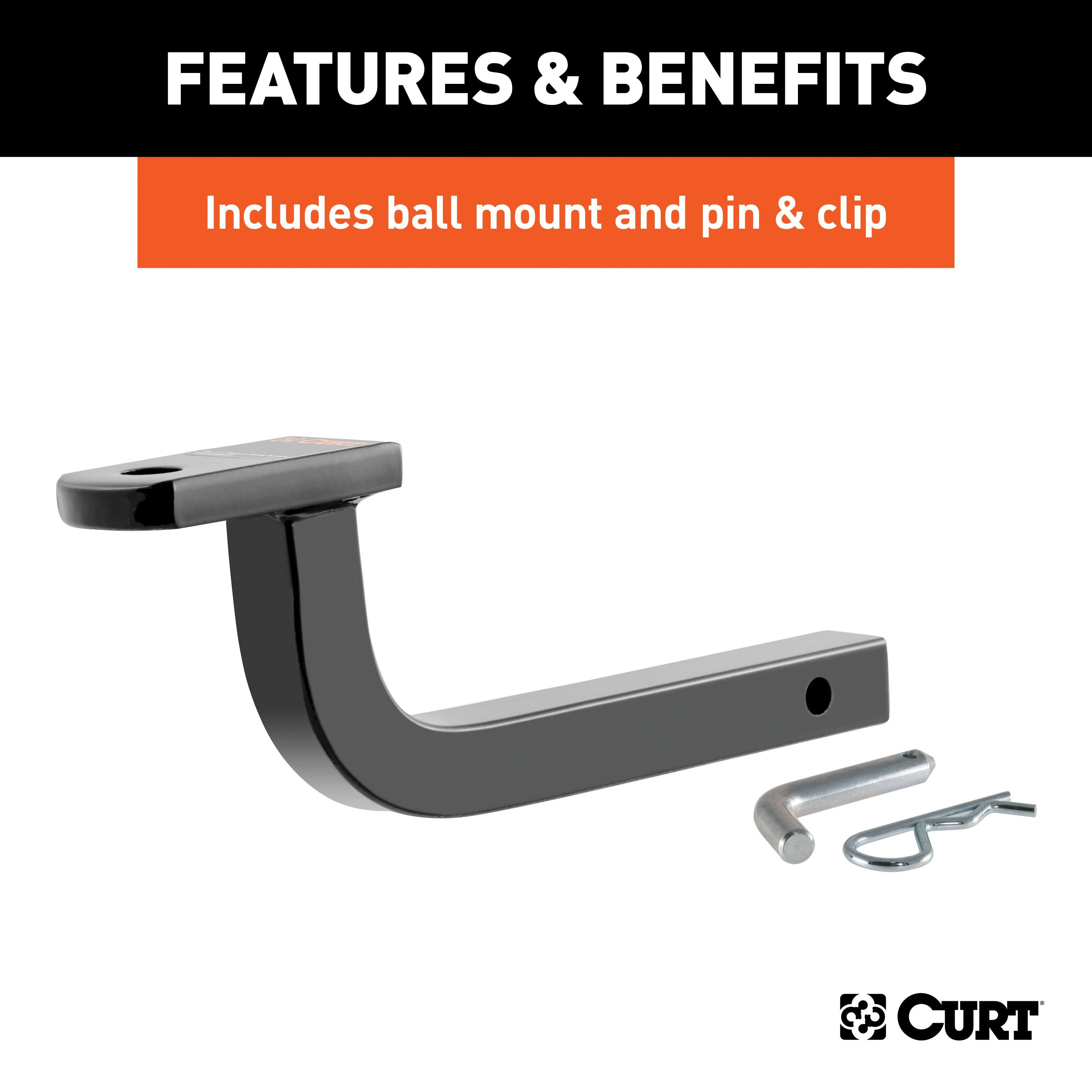 A CURT trailer hitch is the key to pursuing your passions, whether you're taking the family boat out for an afternoon on the water or packing up the mountain bikes for a day on the trails. This CURT class 2 hitch is perfect for towing a small trailer, such as a boat trailer, lightweight camper or utility trailer. It can also be used to mount a hitch cargo carrier or bike rack (never exceed the lowest-rated towing component). Like all CURT custom hitches, this class 2 trailer hitch is made for a vehicle-specific fit. It is engineered to seamlessly integrate with select years of the Nissan Rogue and Rogue Select (see application info to verify fitment). It is rated for 3,500 pounds gross trailer weight and 350 pounds tongue weight. It is also equipped with 1-1/4" x 1-1/4" hitch receiver to accept the included ball mount. The ball mount that comes with this hitch kit has a 3/4" trailer ball hole and can be positioned in the drop or rise orientation for level towing with your specific trailer (trailer ball not included). Like all CURT custom receiver hitches, this class 2 hitch is designed, manufactured, finished and tested with the utmost care. It is engineered for a precise fit, easy installation, maximum towing strength and an integrated look on the vehicle. It is also tested to SAE J684 protocols for safety. This class 2 trailer hitch is finished with our industry-leading dual-coat process for unparalleled rust, chip and UV resistance. It is descaled for a smooth surface, submersed in liquid A-coat for rust prevention inside and out, covered with a highly durable powder coat, and finally co-cured for a dependable shield against the elements. This class 2 hitch comes with a ball mount, hitch pin and mounting hardware for a complete installation.