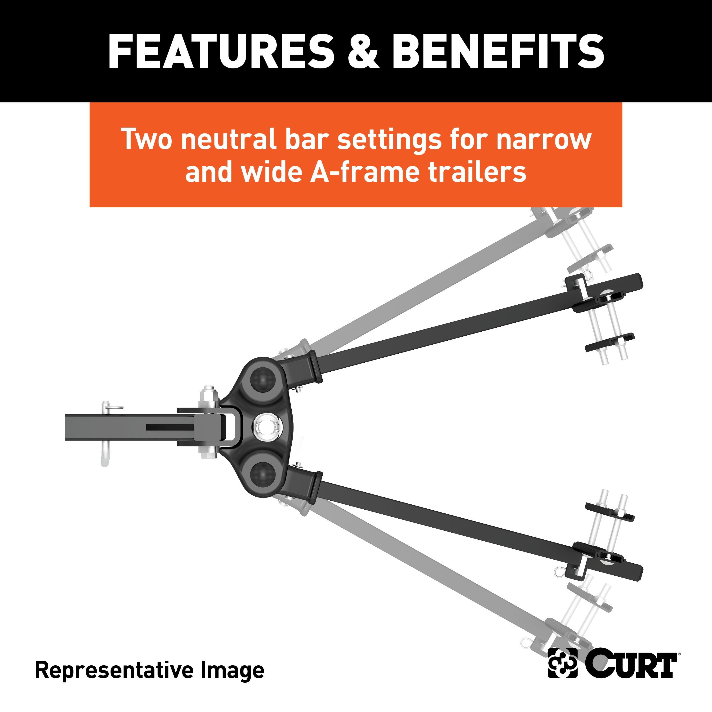 - Fits virtually all A-frame trailers, featuring two neutral spring bar settings