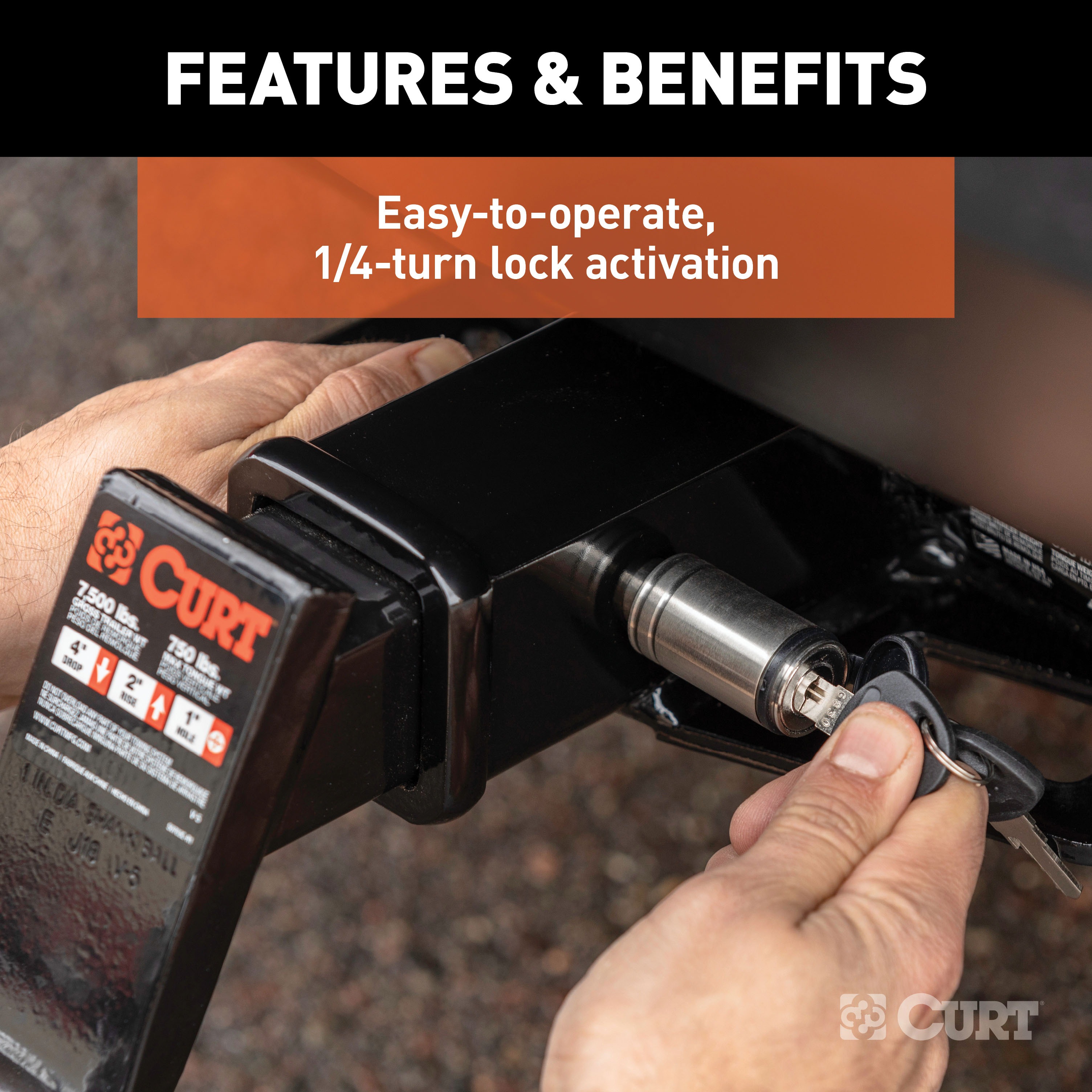 Make your tow vehicle and trailer more secure by keeping them locked up tight with a CURT hitch lock. Like a hitch pin and clip, a hitch lock is designed to insert into the fastener hole in the side of a receiver tube in order to hold a ball mount or hitch-mounted accessory in place. While a CURT hitch pin does offer sufficient strength for keeping your ball mount firmly attached, a CURT hitch lock goes one step further. CURT hitch locks allow you to lock your ball mount into your trailer hitch, deterring theft and preventing anyone from detaching your trailer at the ball mount and towing away your property without your permission. This CURT hitch lock features a barbell design and comes with a 5/8" pin diameter to fit a 2" receiver tube size. CURT barbell hitch locks are comprised of a pin with two end caps and a round locking mechanism. They are key-operated and activate with a simple 1/4-turn. They also come with a watertight dust cap to keep out the elements and prevent corrosion. For the ultimate in towing security, a hitch lock and coupler lock used together will provide security at both the vehicle-side and trailer-side of your towing setup. For your boat, ATV or camper, keep your toys more secure with CURT hitch locks.