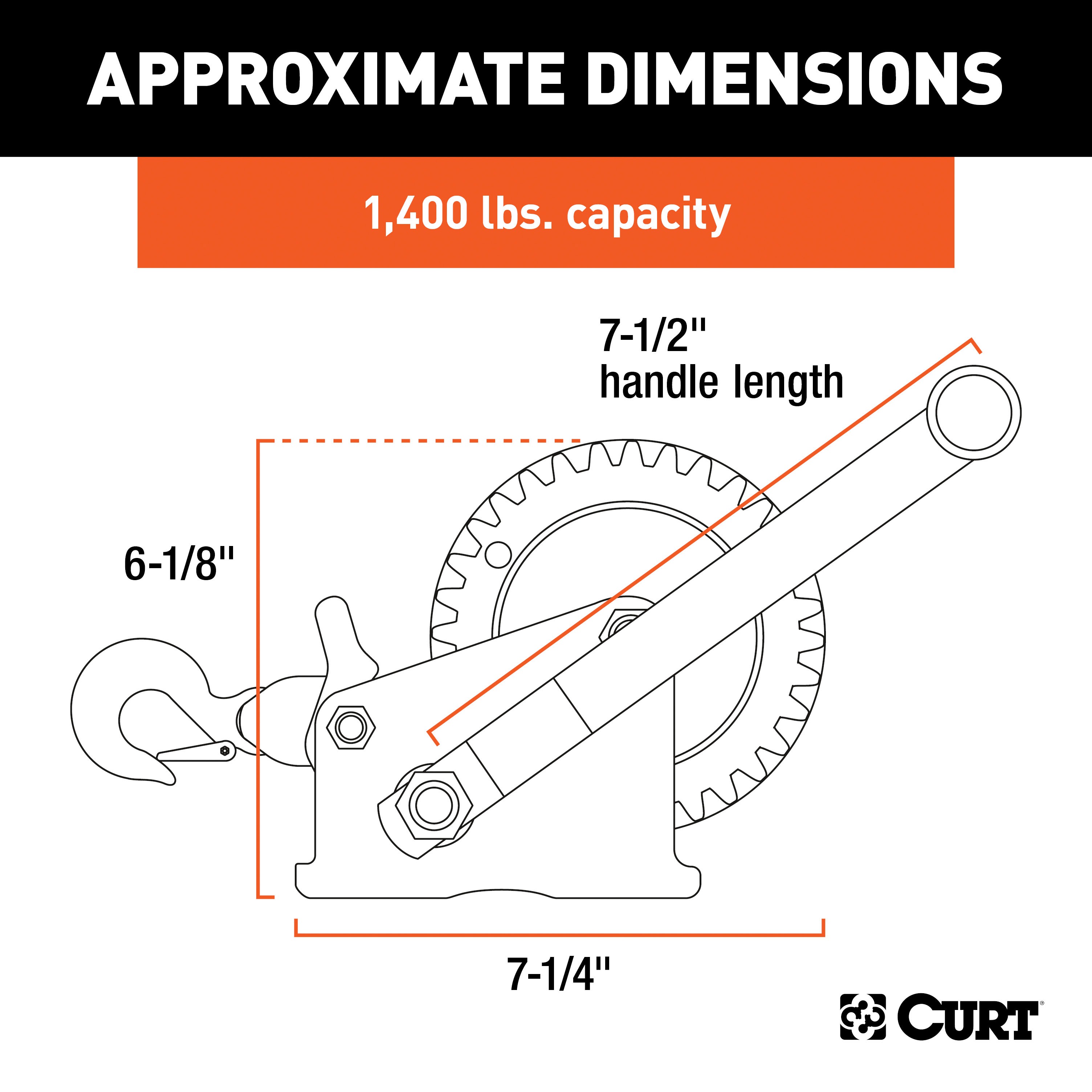 CURT 29435 Manual Hand Crank Boat Trailer Winch, 1,400 lbs Capacity, 7-1/2" Handle, 4.2:1 Gear Ratio, 20' Strap