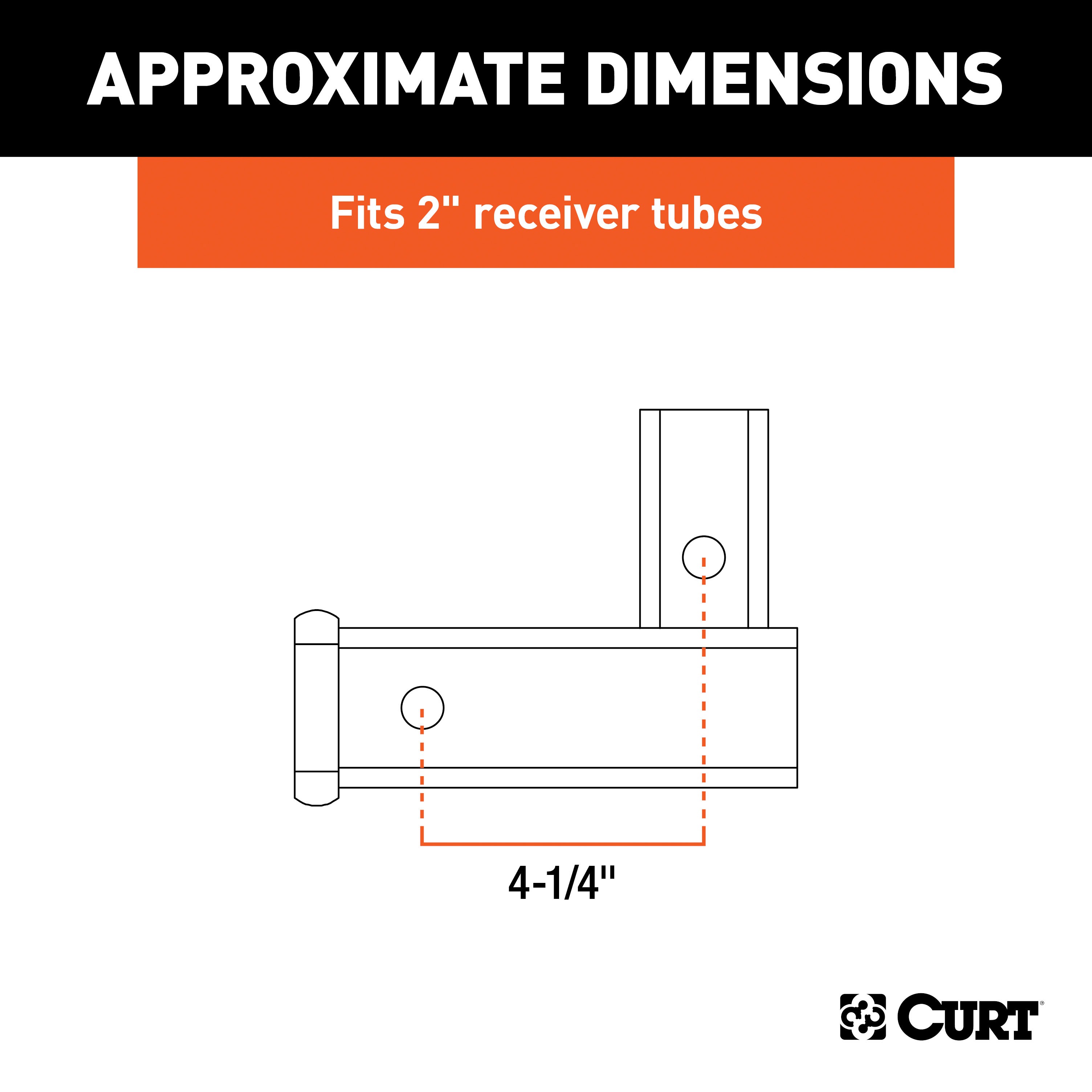 The CURT vertical trailer hitch adapter is designed to turn a vertical receiver into a standard ball mount platform or horizontal receiver tube. A trailer hitch with a receiver tube that points down toward the ground is sometimes preferred on a vehicle because the hitch is then able to be completely hidden from view. With this design, a special ball mount with a vertical shank is required to all make the vehicle ready for towing a trailer or hitch-mounted accessory. This CURT vertical receiver adapter comes with a 2" x 2" shank and features a gross trailer weight capacity of 5,000 lbs. and a tongue weight capacity of 500 lbs. It has a length of 4-1/4" and a drop of 2-7/16". CURT adapters are constructed using our quality manufacturing processes. We CNC-form each unit, weld it together using advanced robotic systems and then mechanically descale every surface to make each adapter smooth to accept a finishing coat. Our adapters receive a durable gloss black powder coat finish to give them excellent rust, chip and UV resistance.