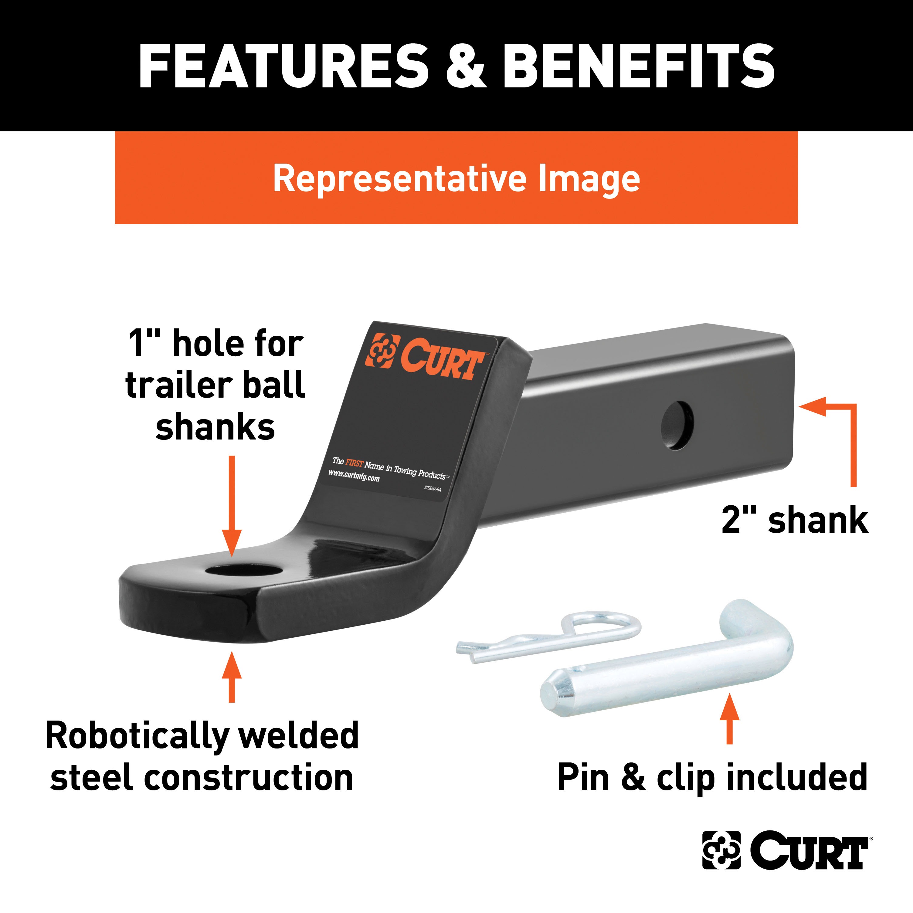 CURT class 3, or standard-duty, ball mounts are a step up from classes 1 and 2. They feature a 2" x 2" shank and have a higher weight capacity for towing heavy-duty trailers, including utility trailers, boat trailers, campers, single-horse livestock trailers and most recreational vehicle trailers. With class 3 trailer hitches being the most common type of trailer hitch for pickup trucks and SUVs, the class 3 ball mount, by association, is an excellent complement to this trailer hitch and these larger vehicles (NOTE: Never exceed the lowest weight capacity of any towing component; i.e. the vehicle, hitch, trailer, etc).This particular class 3 ball mount has a gross trailer weight capacity of 7,500 lbs. and a tongue weight capacity of 750 lbs. It features a length of 8-1/4", a drop of 4" and a possible rise of 2". It also comes with a pin and clip for immediate installation. Class 3 ball mounts are CNC-formed and robotically welded to ensure unwavering precision and dependable strength in each and every unit. We mechanically descale each one to provide a smooth surface for a long-lasting finish. This class 3 ball mount comes with a durable gloss black powder coat finish to protect against corrosion, scratches, UV damage and more to give it the thick skin it needs to face the road ahead.