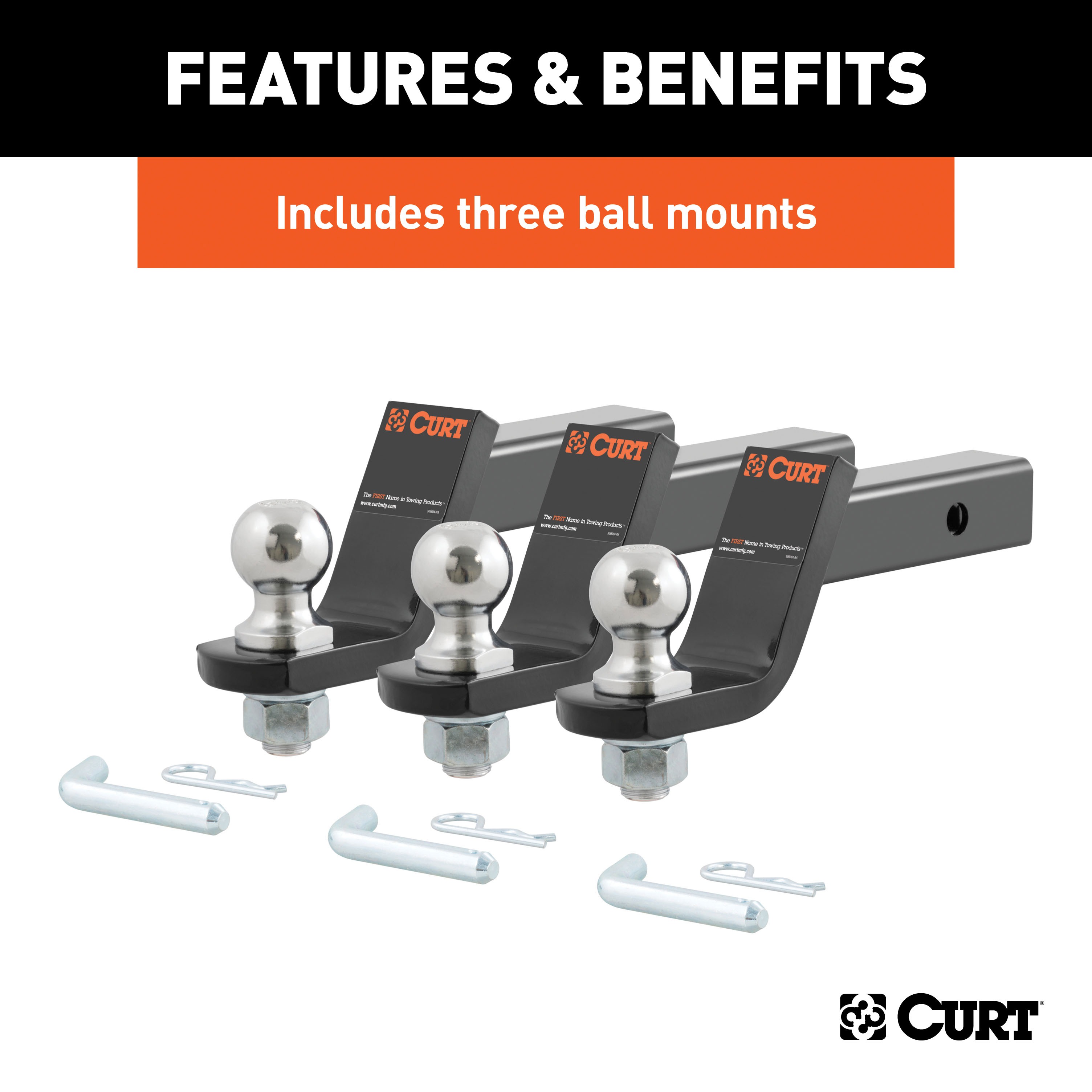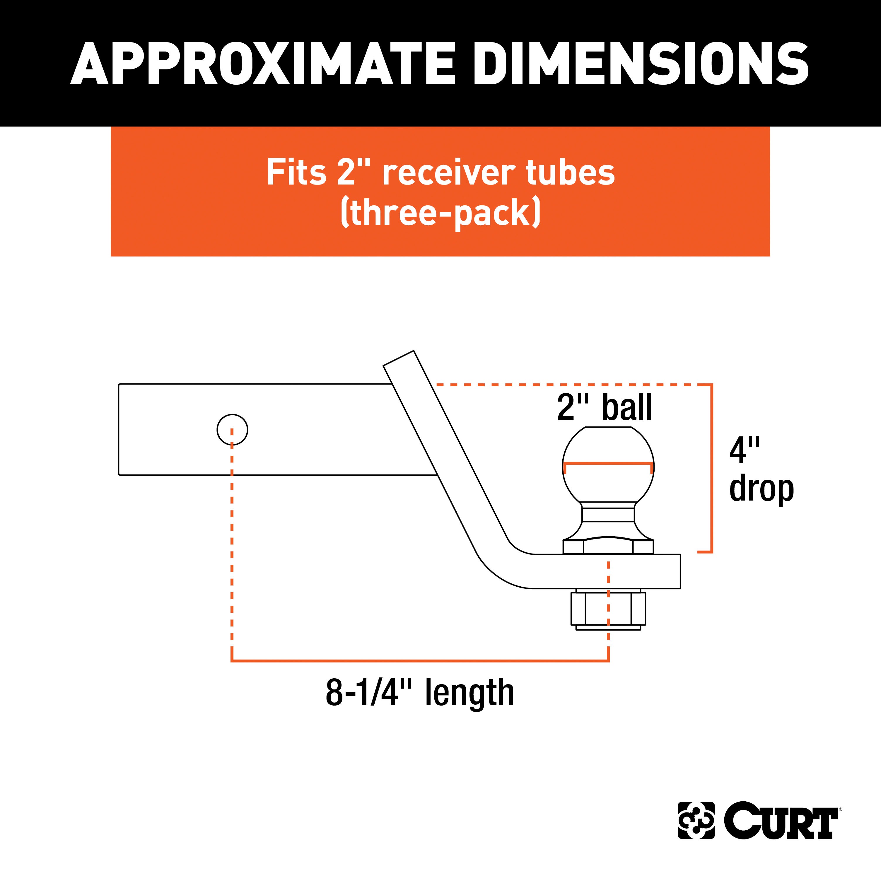 CURT 45057 Trailer Hitch Mounts with 2-Inch Ball & Pin, Fits 2-In Receiver, 7,500 lbs, 4-Inch Drop, 3-Pack