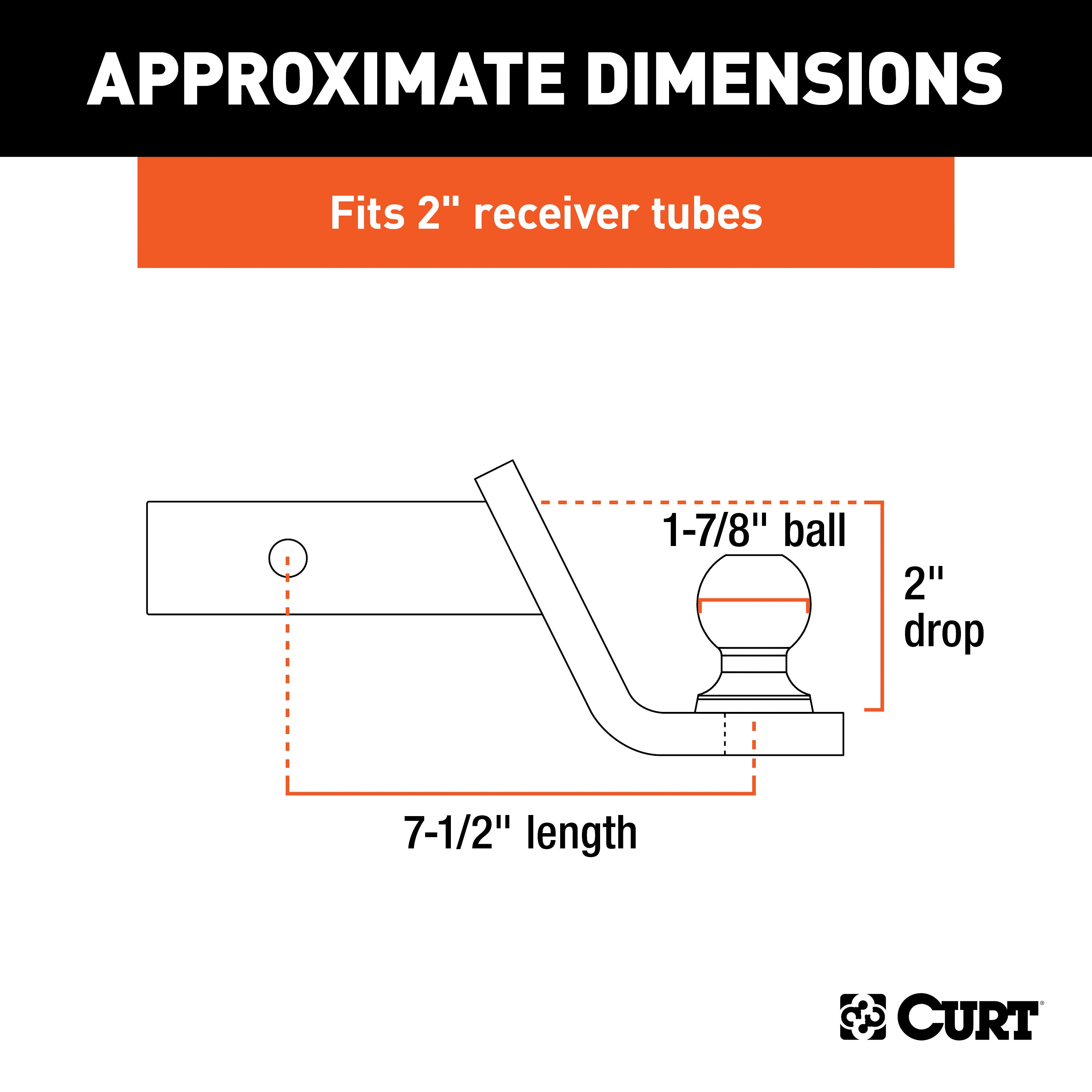 CURT 45131 Fusion Trailer Hitch Mount with 1-7/8-Inch Ball & Pin, Fits 2-Inch Receiver, 5,000 lbs, 2-In Drop