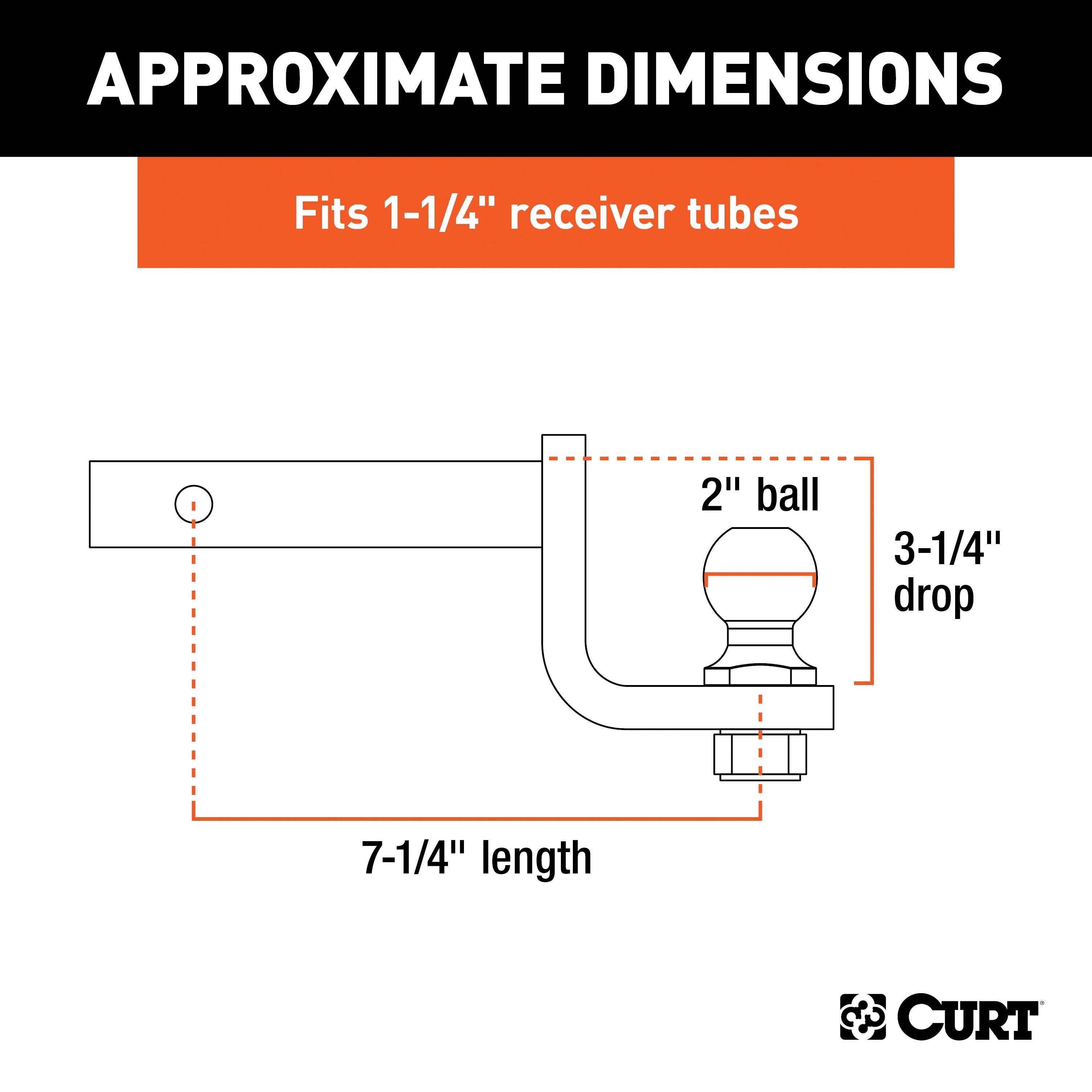 CURT 45148 Trailer Hitch Mount, 2-Inch Ball, Pin, Fits 1-1/4-In Receiver, 3,500 lbs, 3-1/4" Drop