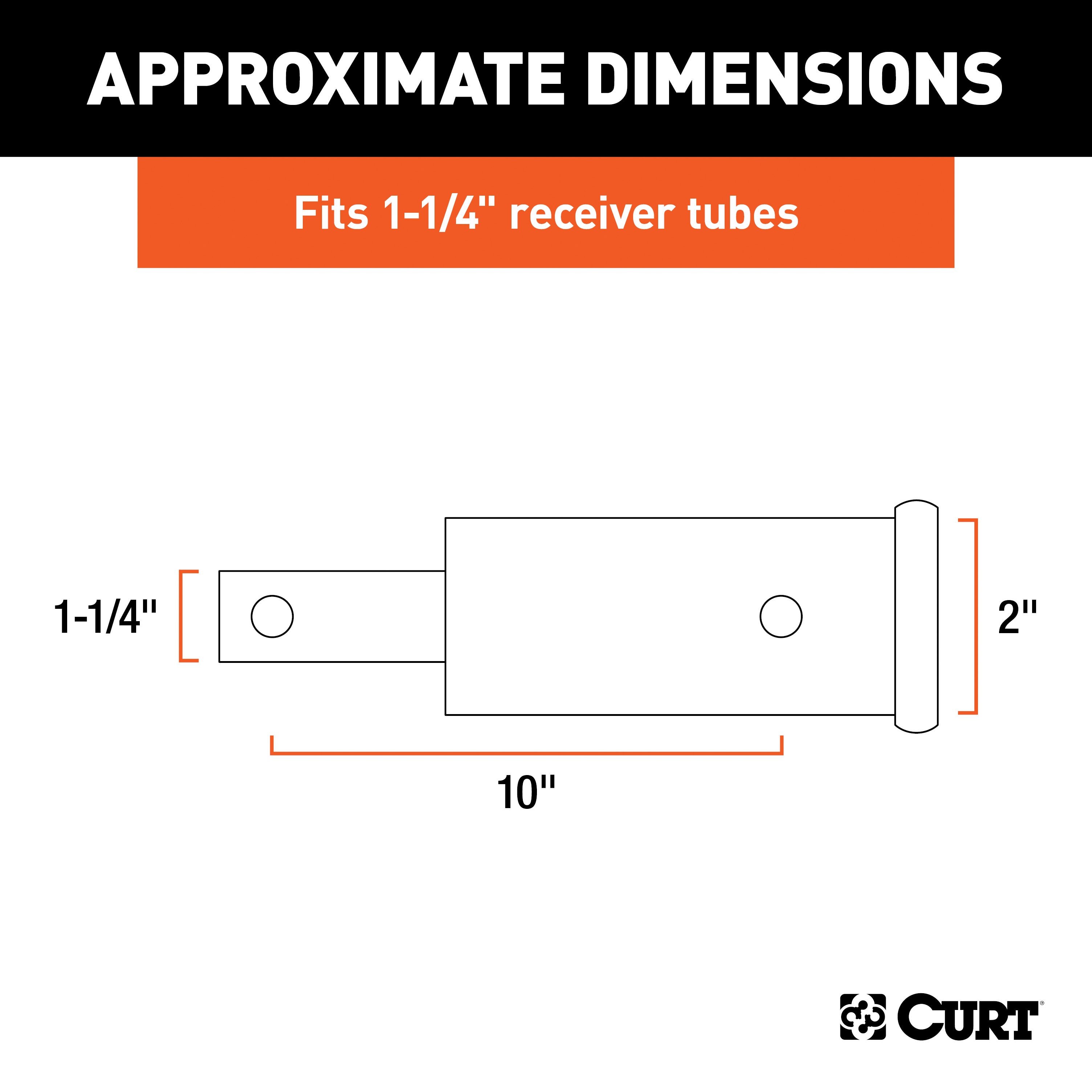 CURT 45790 Trailer Hitch Receiver Adapter, 1-1/4 to 2-Inch, 10-In Extension, 350 lbs