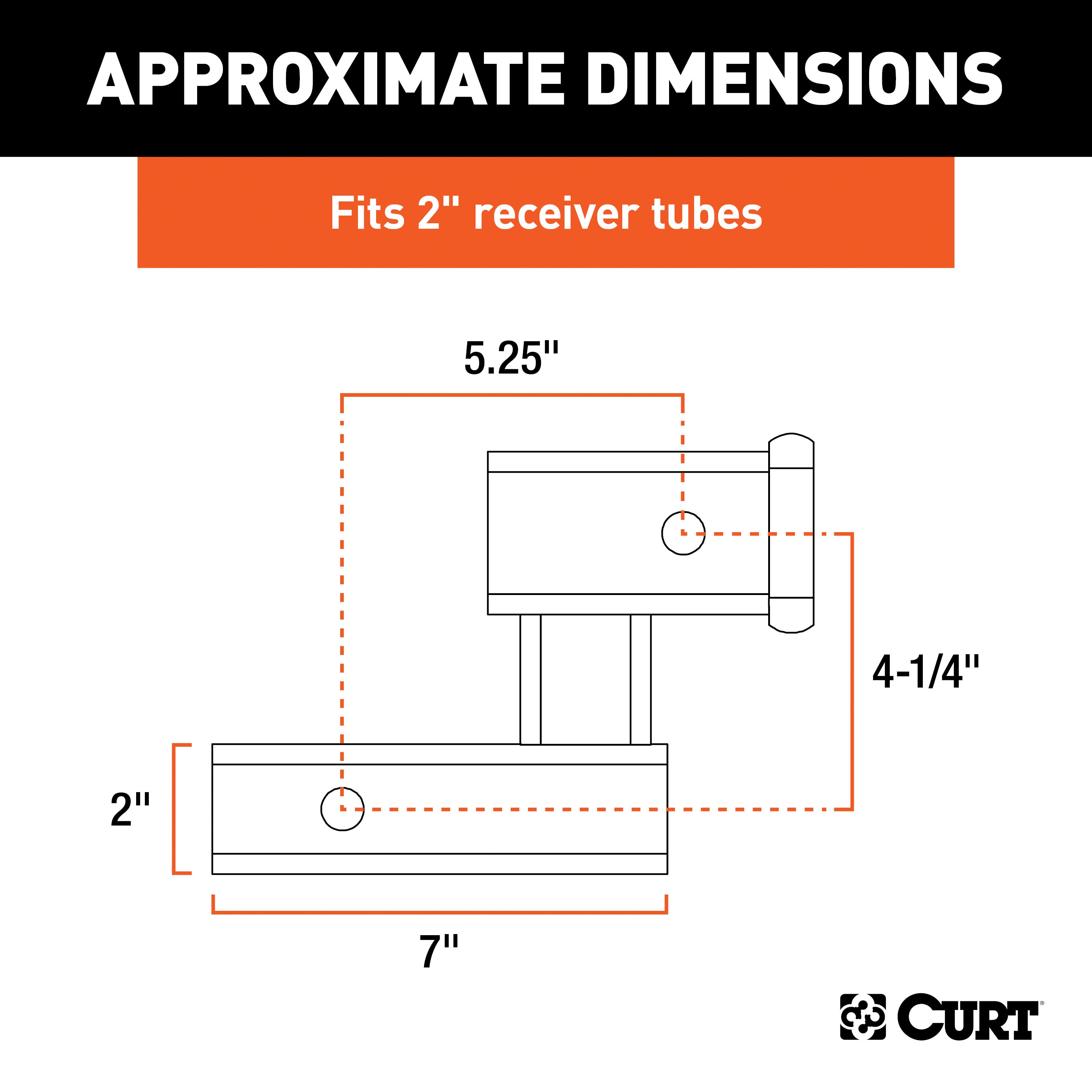 No matter what you are towing, CURT towing equipment is intended to get you from point A to point B and to have peace of mind while doing so. Our hitch extenders are no exception. When you have spacing issues with your hitch-mounted accessories such as a bike rack or cargo carrier, or you need to give your ball mount and trailer coupler a little extra room, a CURT hitch extender can help. Hitch extensions are simply receiver tubes that insert into your trailer hitch to add a certain amount of clearance for your vehicle's bumper or spare tire mounted on the back. A hitch extender makes it very easy to give your tow load the room that it requires and helps protect your vehicle from scuffs, scratches and even dents. This special raised receiver hitch extension is designed to fit a 2" x 2" receiver tube opening. It not only extends the receiver by 5-1/4" but also adds 4-1/4" of ground clearance for a hitch-mounted bike rack or cargo carrier (raised receiver may interfere with rear vehicle bumper). It has a tongue weight capacity of 350 lbs. but is not intended for towing a trailer. CURT hitch extenders, like our ball mounts and trailer hitches, are crafted to be durable and dependable. In addition to the strong steel construction and precise welding, our trailer hitch extenders receive a gloss black powder coat for ongoing prevention of rust, chipping and UV damage.