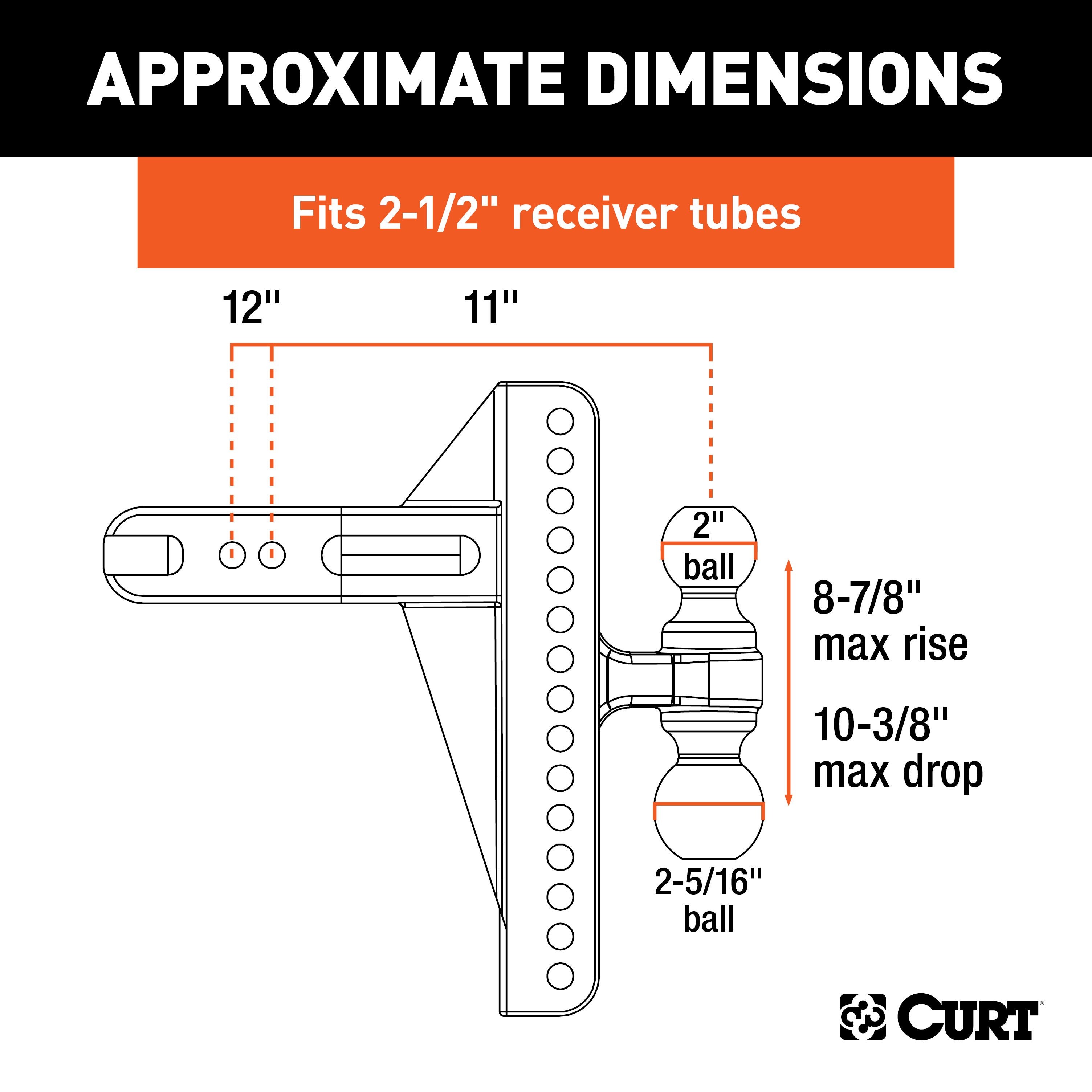 CURT 45927 Adjustable Trailer Hitch Ball Mount, 2-1/2-Inch Receiver, 10-3/8-Inch Drop, 2 and 2-5/16-Inch Balls, 20,000 lbs