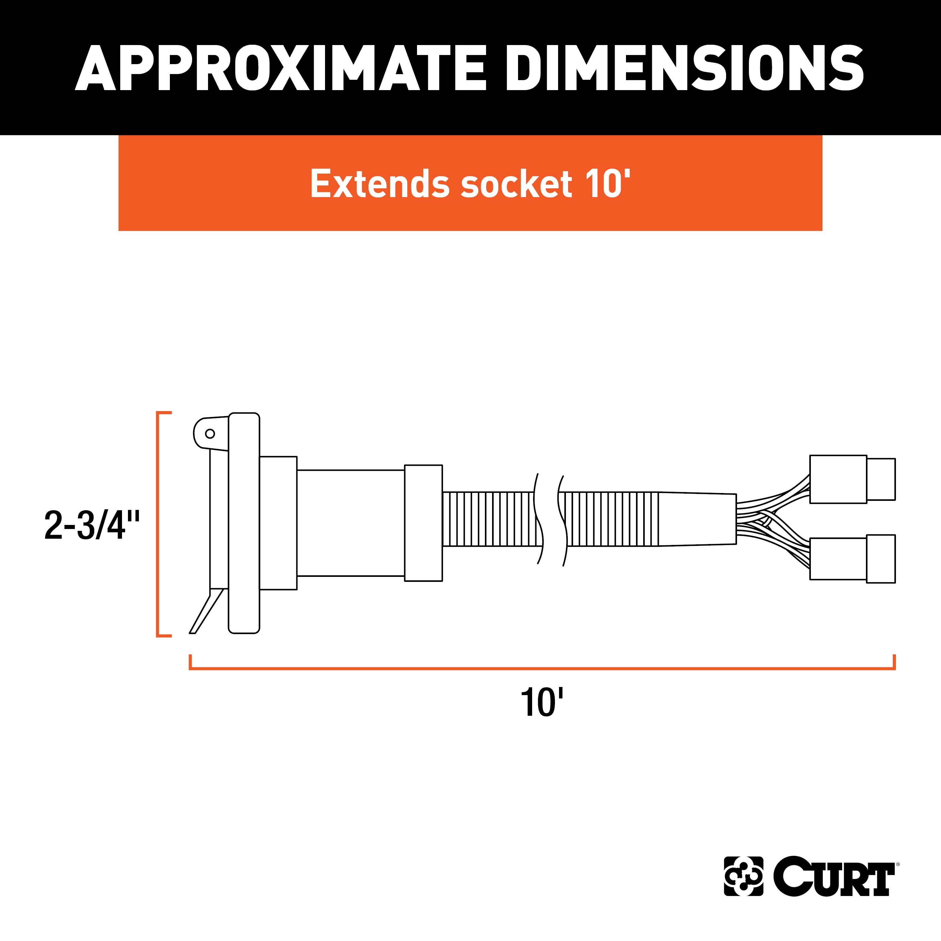 CURT 56001 10-Foot Vehicle-Side Truck Bed 7-Pin Trailer Wiring Harness Extension, Select Dodge Ram 1500, 2500, 3500, Dakota
