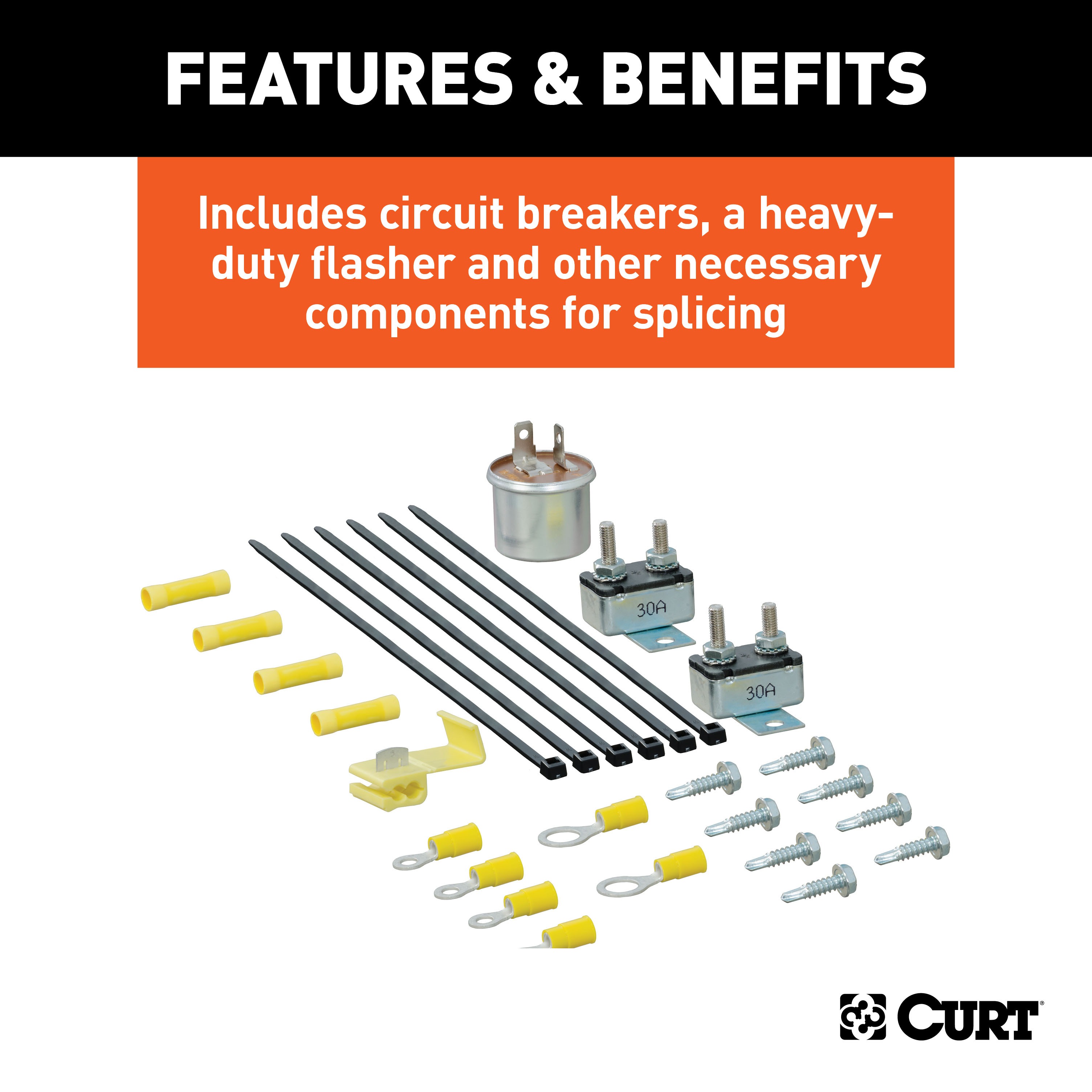 There are several different types of connectors used to supply power from a tow vehicle's electrical system to a trailer's wiring system. Some trailers only need the bare essentials -- running lights, brake lights and turn signals -- while others require a connection for reverse lights, electric brakes and auxiliary power. With connectors ranging from simple to complex, it may be the case that the connection between your vehicle and your trailer is not a perfect match. For example, your truck may be equipped with a 6-way round socket, but your trailer may have a 4-way flat plug. For this very common problem, CURT offers a quick and simple solution in the form of an electrical adapter. An adapter is an electrical device that allows a connection to be made between a mismatched trailer plug and vehicle socket. It easily plugs in your vehicle's electrical socket and usually requires no additional wiring. CURT offers an array of adapters to accommodate most types of plugs and sockets, including 4-way flat, 4-way round, 5-way flat, 6-way round, 7-way RV blades and more. This electrical adapter is designed to adapt a 4-way flat vehicle socket to fit a 7-way RV blade trailer plug. It also includes wiring and electrical components to splice in and route a trailer brake controller connection from the cab of the vehicle. All CURT wiring and electrical products come with a one-year limited warranty to give you the assurance you need to tow with confidence.