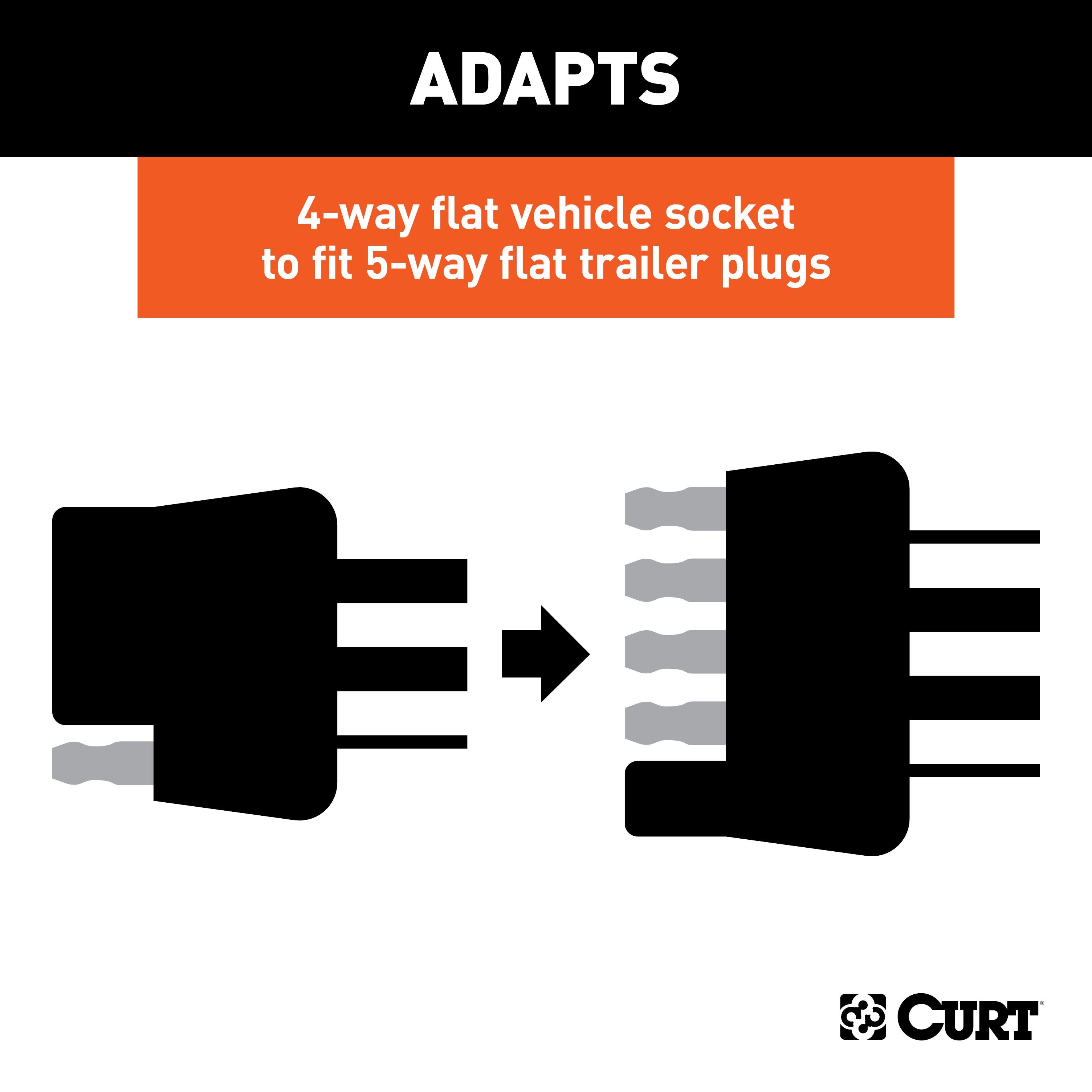 - Adapts 4-way flat vehicle socket to fit 5-way flat trailer plugs