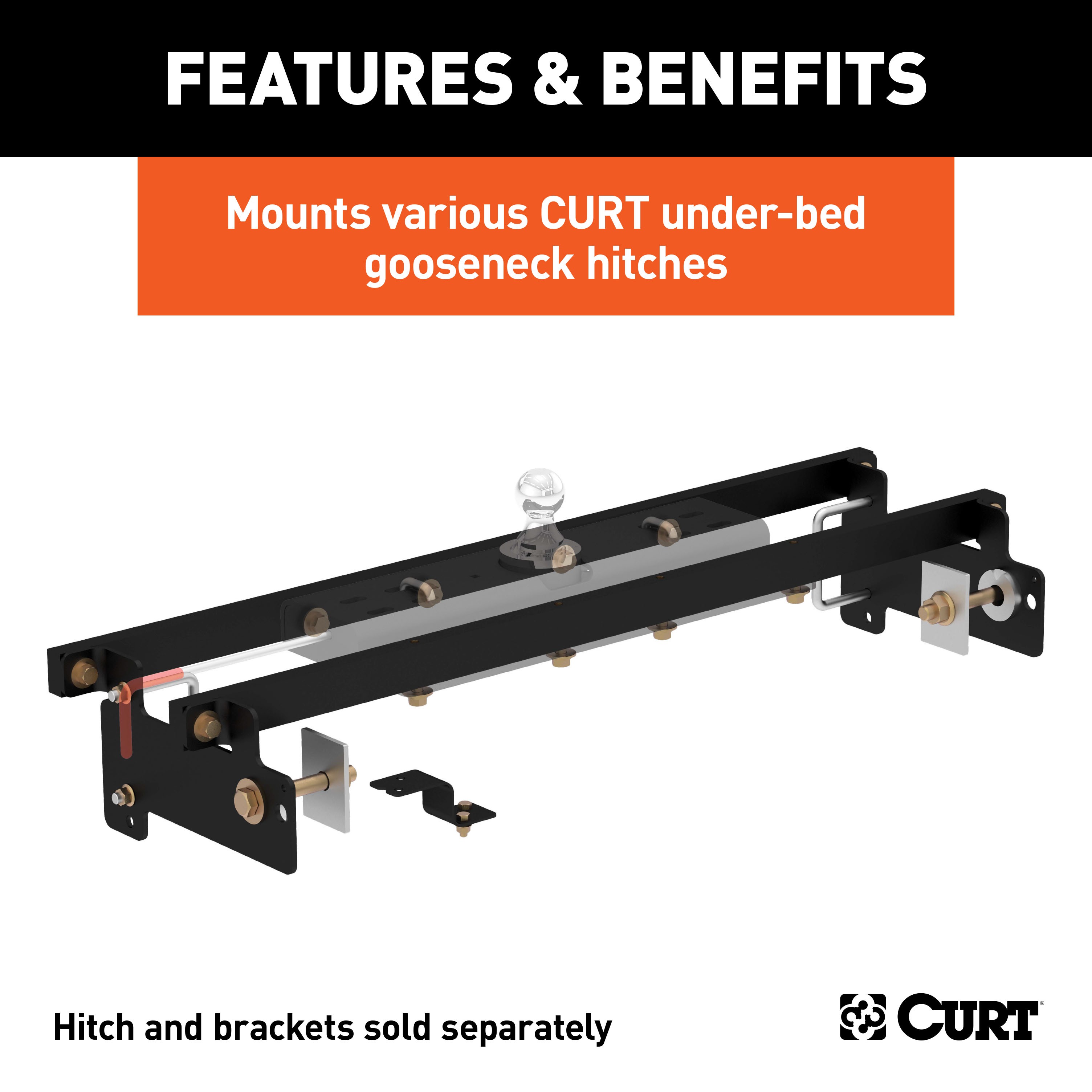 - Includes mounting brackets only (gooseneck hitch sold separately)