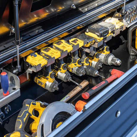 These tool organizers are constructed from rugged 14-gauge steel and will optimize the storage space inside your truck box. Each organizer bolts into place with factory-included mounting hardware for quick assembly. Stay organized and productive on the job site with these versatile, heavy-duty tool holders.