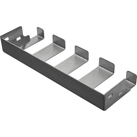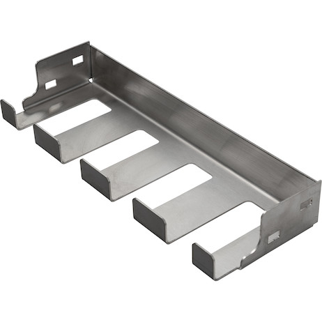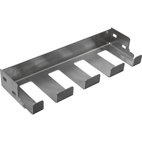 Custom-fit stainless steel tool holders (SKU 3068741) designed exclusively for Buyers Products Heavy-Duty Gloss Black Steel Flatbed Contractor Truck Tool Box with Flip-Up Door. Organize power tools, wrenches, and sockets.