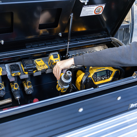 Custom-Fit Power Tool Holder Tray For Buyers Gloss Black Steel Flatbed Cross Bed Truck Tool Box Series