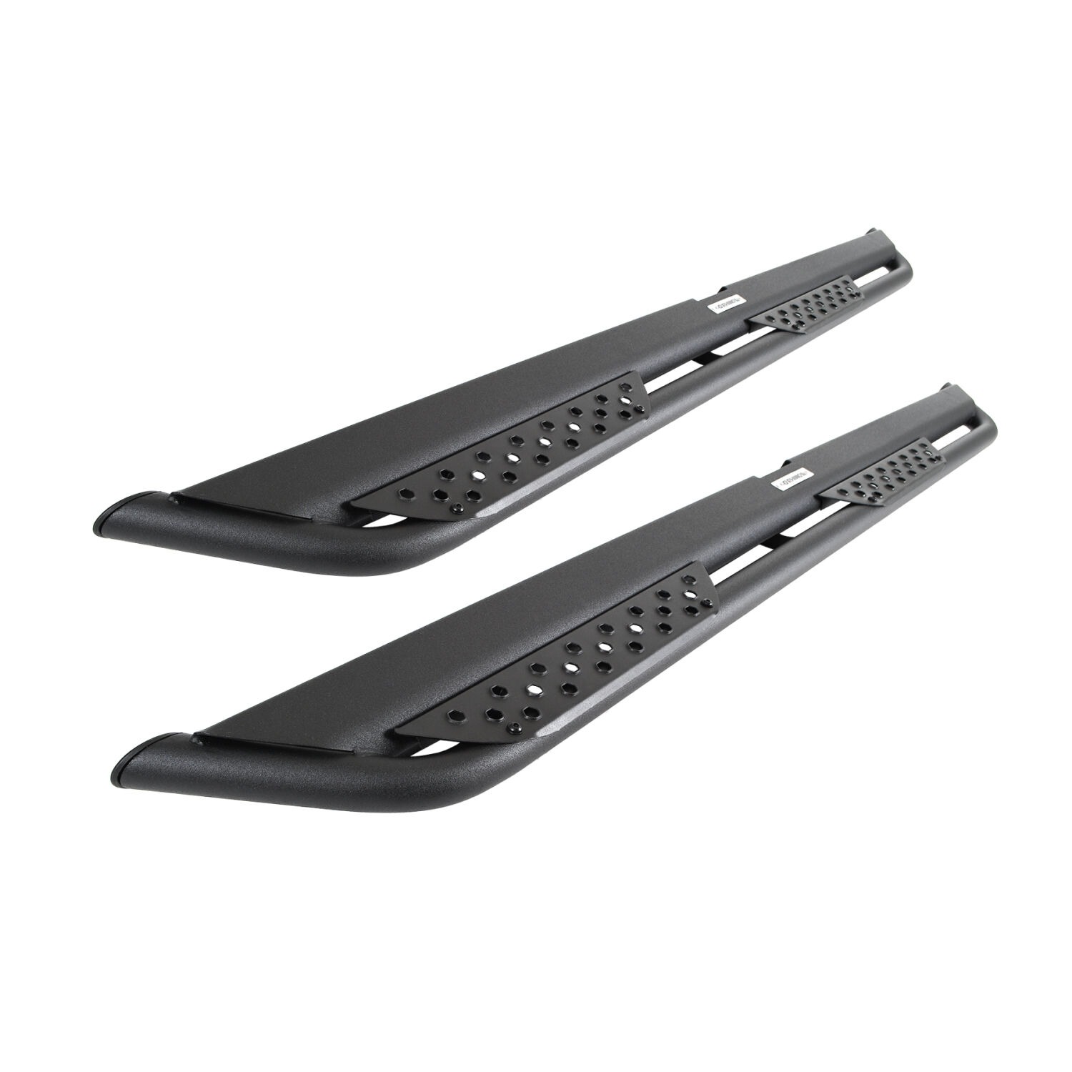 - Steel step pads with punched hex-pattern cut outs for extra grip