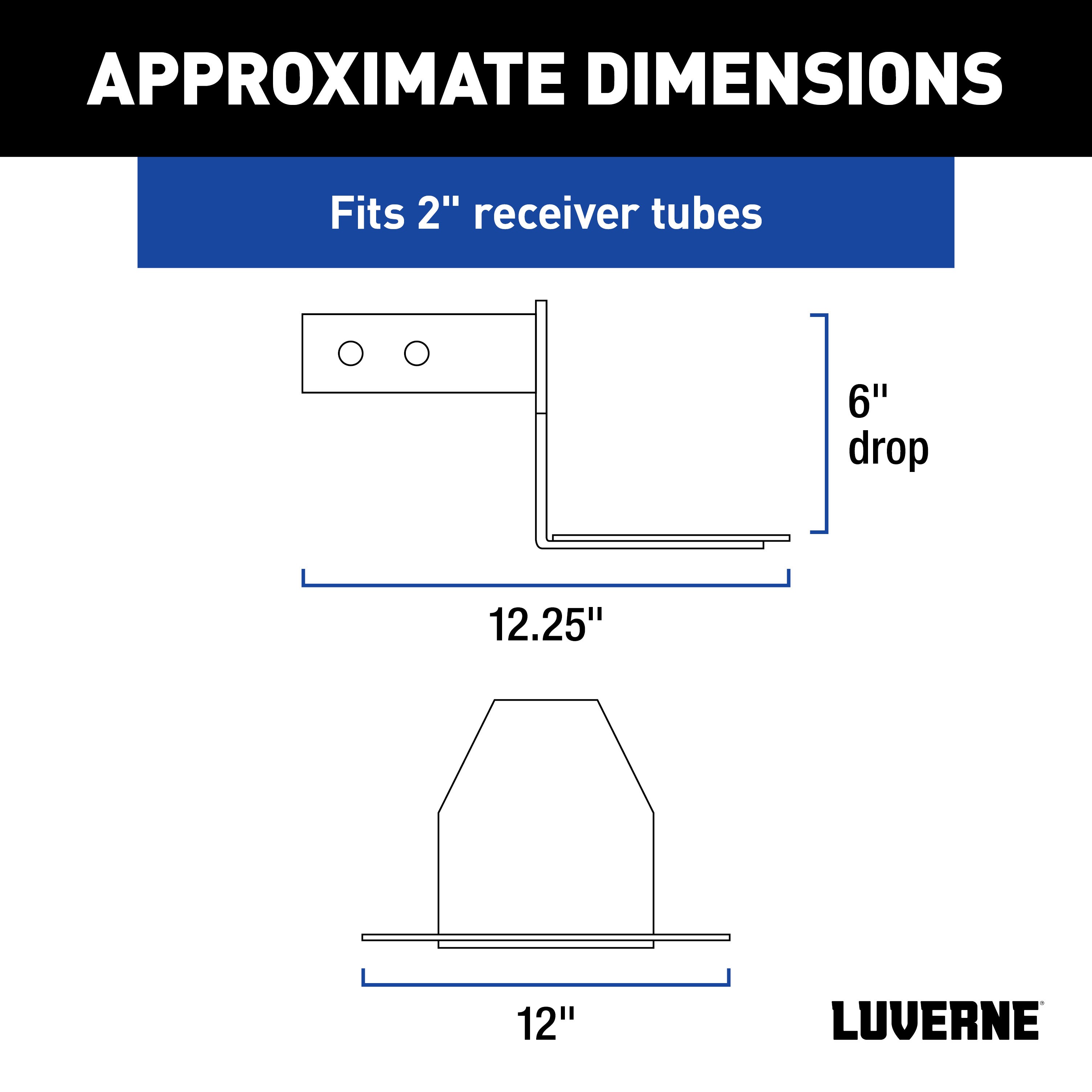 The Grip Step receiver hitch step provides a convenient stepping surface on the front or rear of the vehicle. It installs using the receiver tube opening and can be attached or detached as needed. This receiver hitch mount securely attaches to the Grip Step receiver hitch step and allows it be mounted on a 2" x 2" receiver tube opening (fits most 2" receivers; may not be compatible with certain receiver adapters). It features a 6" drop to give the step added clearance from the rear bumper or spare tire. It also includes all necessary mounting hardware for attaching the step and comes with a hitch pin. NOTE: This package includes the receiver mount only. The Grip Step receiver hitch step #415026 is required to complete the assembly.