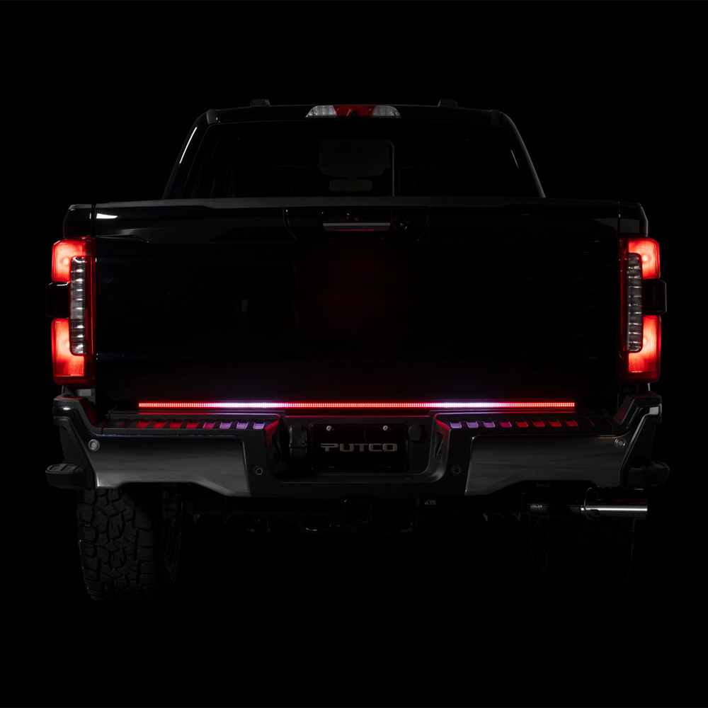 Give your truck the ultimate upgrade in lighting technology with the Putco Freedom Blade. This high-power LED light bar is designed and manufactured in the USA. Each light bar is designed to work perfectly with the year, make, and model of your truck. Unlike other rear light bars, the Freedom Blade is fully encapsulated in tinted polycarbonate resin that keeps moisture, dirt, and dust out ensuring a long life. Also, the polycarbonate makes the blade flexible so it forms to the lines of your truck, unlike other light bars on the market.Putco Freedom Blade is named this not just because it was made in the USA but also because you can choose your turn signal color between Amber or Red. In addition, the Freedom Blade has an industry-exclusive startup sequence and scanning turn signal. Depending on your make and model this is available in two sizes 60" and 48". Each light bar is manufactured with up to 1,296 LEDs (60"version) rated at 60 Watts of power running at 2,000 Hz, producing a solid beam of light that is visible miles away!If you are looking for an American-made tailgate light bar then the Freedom Blade is for you. This blade installation and setup only takes about 30 minutes with no cutting or splicing of wires. Each blade is compliant with the SAE IRSE19 DOT Compliant.