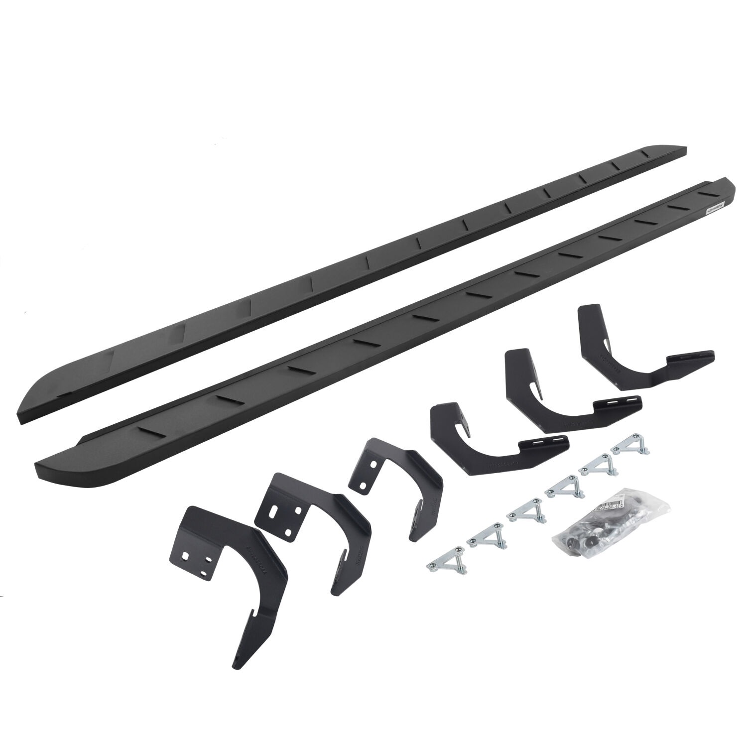 RB10 Slim Line Running Boards offer a rugged, full length step. The Raptor-inspired design is available with protective bedliner coating or textured black powder coat finish. Mounting brackets included.